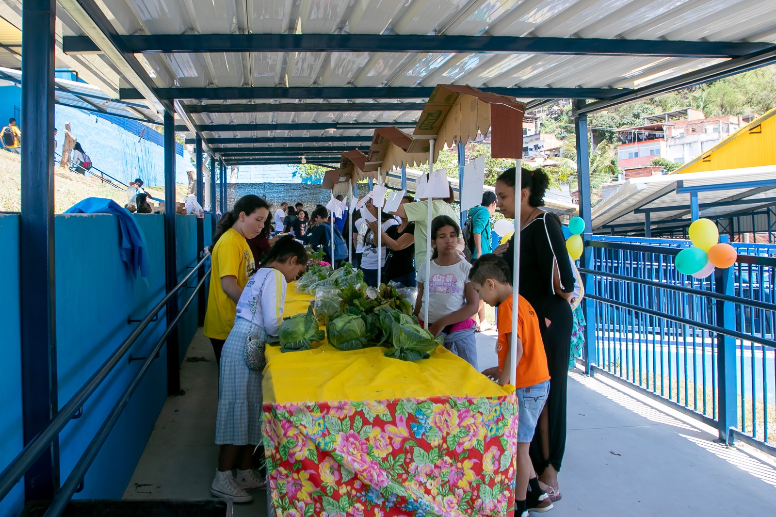 #PraTodosVerem: sequência de fotos mostra alunos participando da Feira da Cultura Empreendedora na EM Prof. Walfrido Maciel Monteiro, do Morro do Abrigo. Fim da descrição.