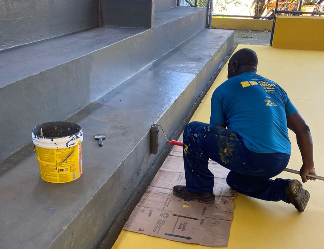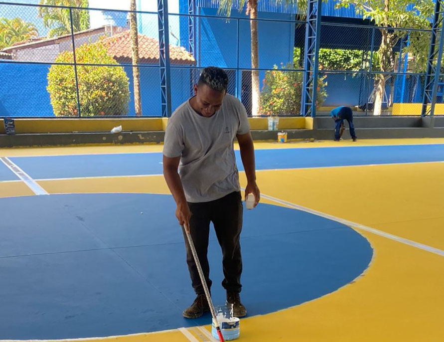 A revitalização contempla a pintura completa das áreas interna e externa, adequações nos banheiros, pintura e demarcação da quadra semioficial, substituição de traves e redes, além de melhorias em todo o sistema de iluminação, agora com tecnologia LED.