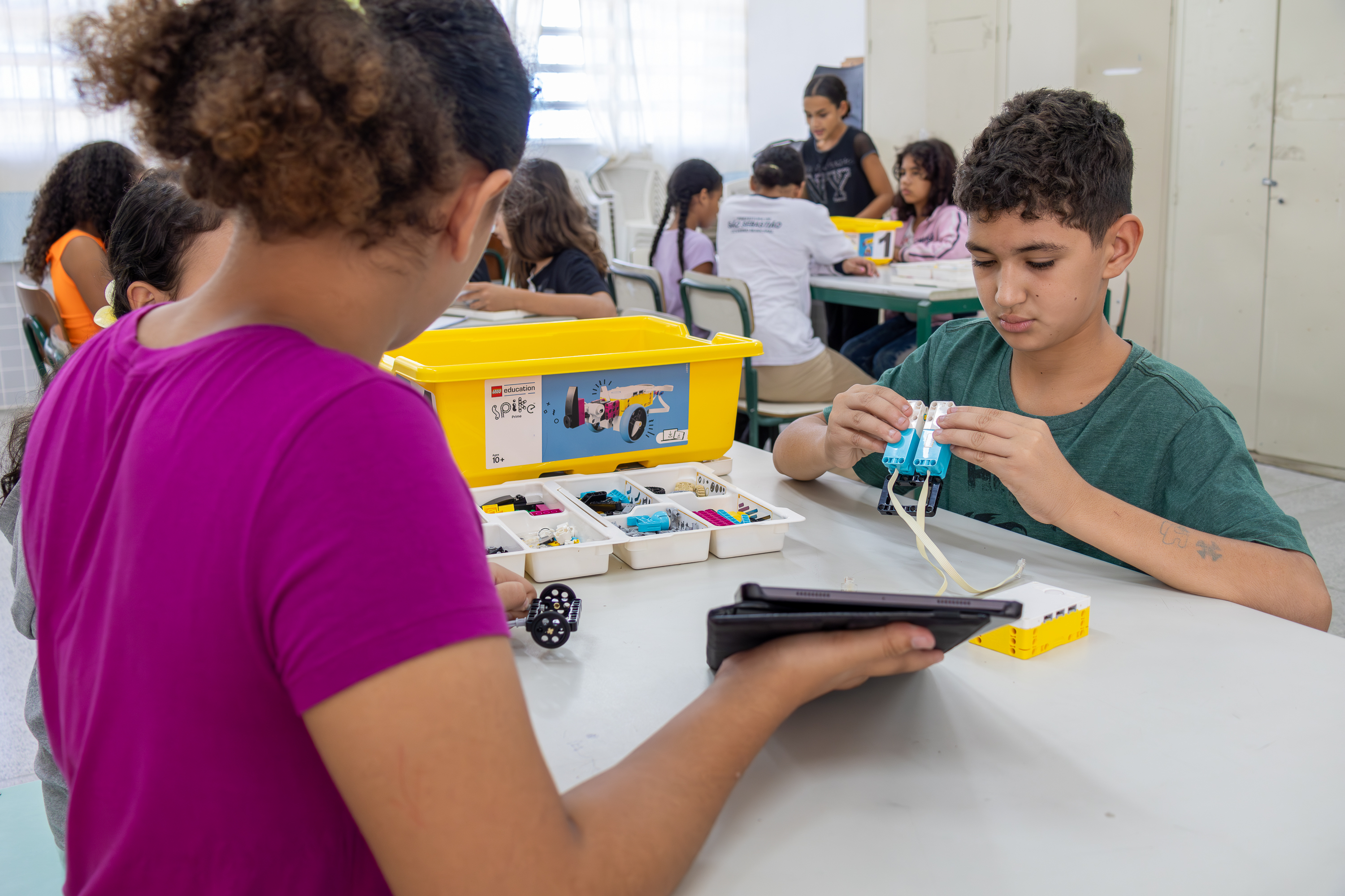 Para a aluna Valentina Almeida de Jesus, de 11 anos, além da aprendizagem, o destaque está na colaboração: “A gente aprende a trabalhar junto. Eu gosto muito de construir, e meus colegas me ajudam quando eu não acho uma peça.”