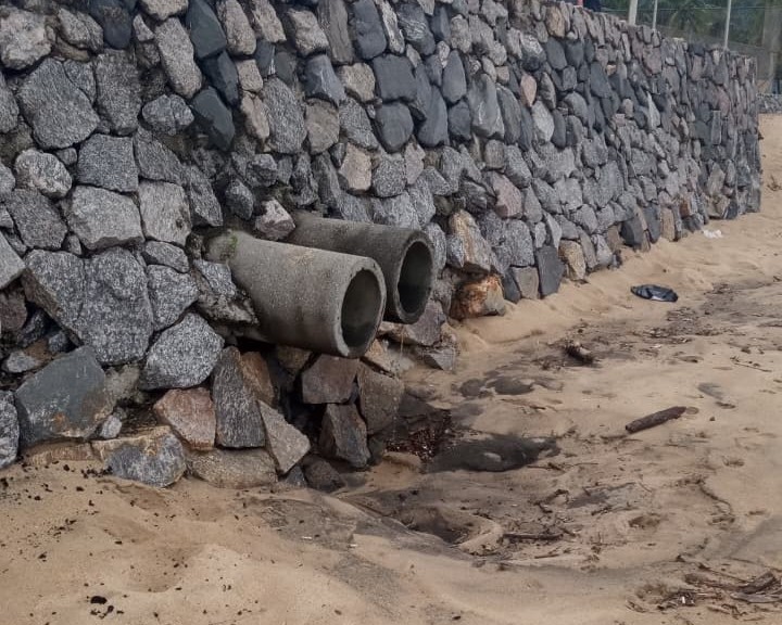 #PraTodosVerem: Imagens em vários ângulos do escoamente em tubulação na praia de Boiçucanga, fiscalizada pela Secretaria do Meio Ambiente no sábado . Fim da descrição.