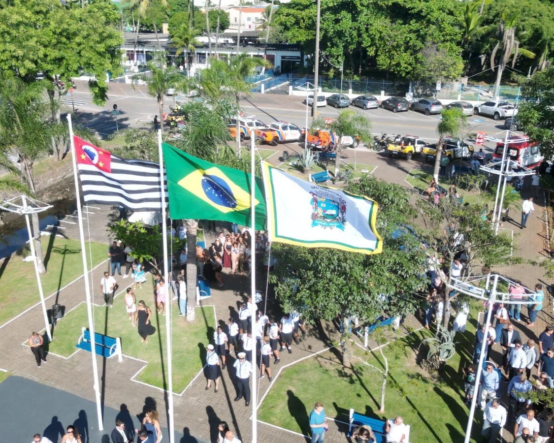 São Sebastião comemorou nesta segunda-feira (16) os 390 anos de Emancipação Político-Administrativa com uma cerimônia cívica de hasteamento das bandeiras na Rua da Praia, no Centro Histórico. O ato reuniu autoridades regionais, representantes das forças de segurança, lideranças religiosas, vereadores, servidores públicos e moradores, marcando a celebração de quase quatro séculos de história e da identidade caiçara que molda a cultura e o modo de vida do município.