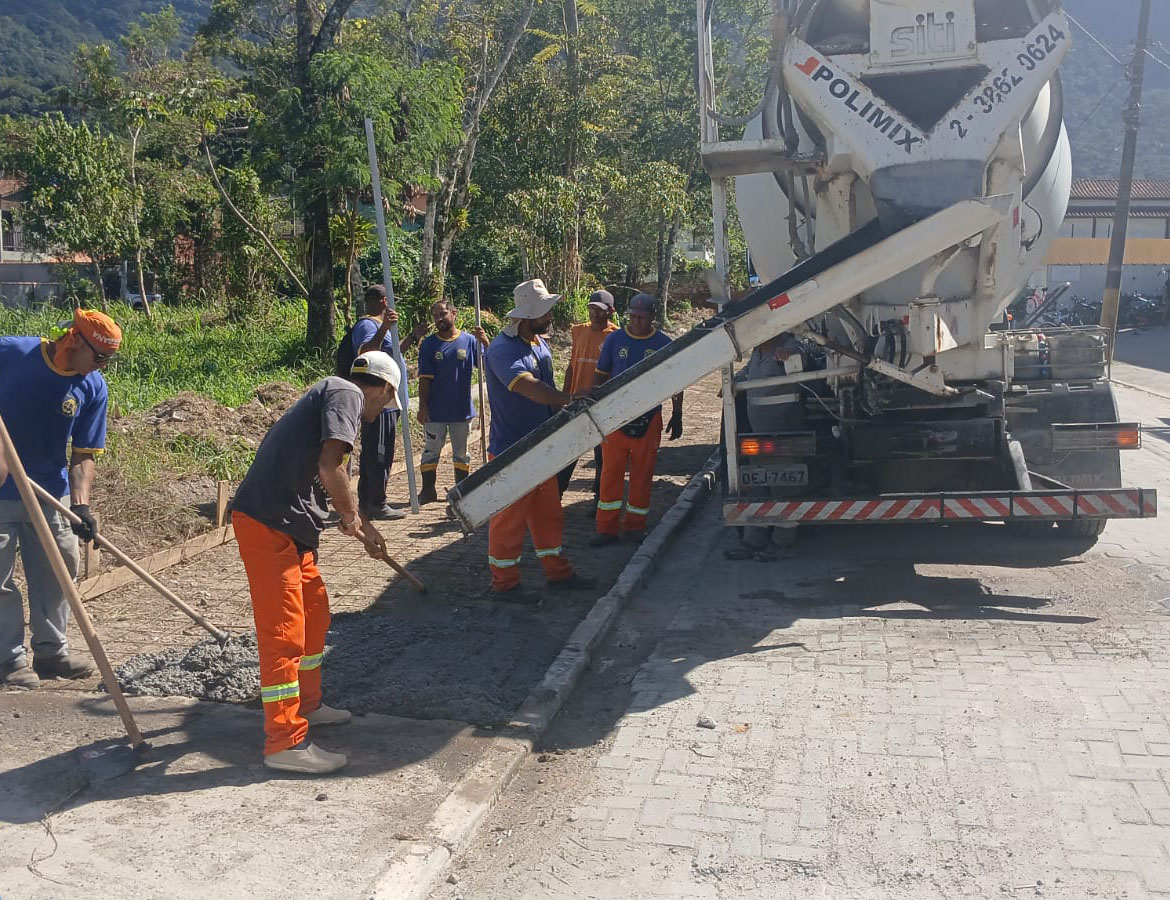 A Prefeitura de São Sebastião, por meio da Secretaria de Serviços Públicos (Sesep), iniciou na última terça-feira (14/4) as obras de concretagem da calçada da Rua Porto Seguro, no bairro de Maresias.