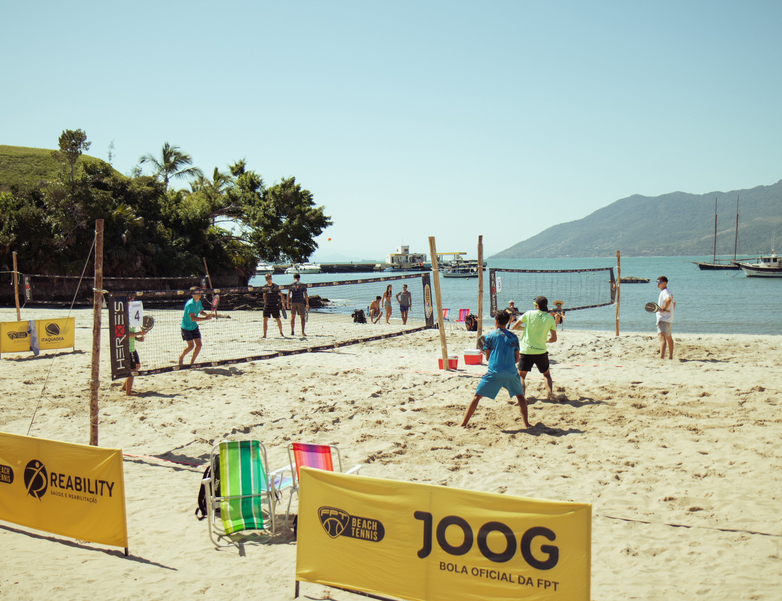 #PraTodosVerem: Imagens de atletas jogando beach tennis em edições anteriores do São Sebá Open de Beach Tennis.