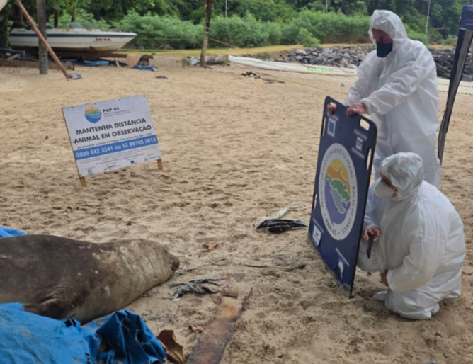 Antes de permanecer no local, o animal foi observado ao longo da tarde em diferentes praias da região, como Barra do Sahy e Juquehy, em busca de um local adequado para descanso. Em alguns momentos, a aproximação e a aglomeração de pessoas fizeram com que retornasse ao mar, até conseguir subir e permanecer em repouso em Boiçucanga.