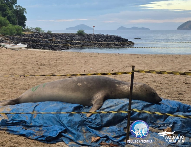 As equipes do Instituto Argonauta, que atuam no Projeto de Monitoramento de Praias da Bacia de Santos (PMP-BS), foram acionadas para atender um elefante-marinho (Mirounga leonina) em São Sebastião, na Praia de Boiçucanga, na quarta-feira (1º/4).