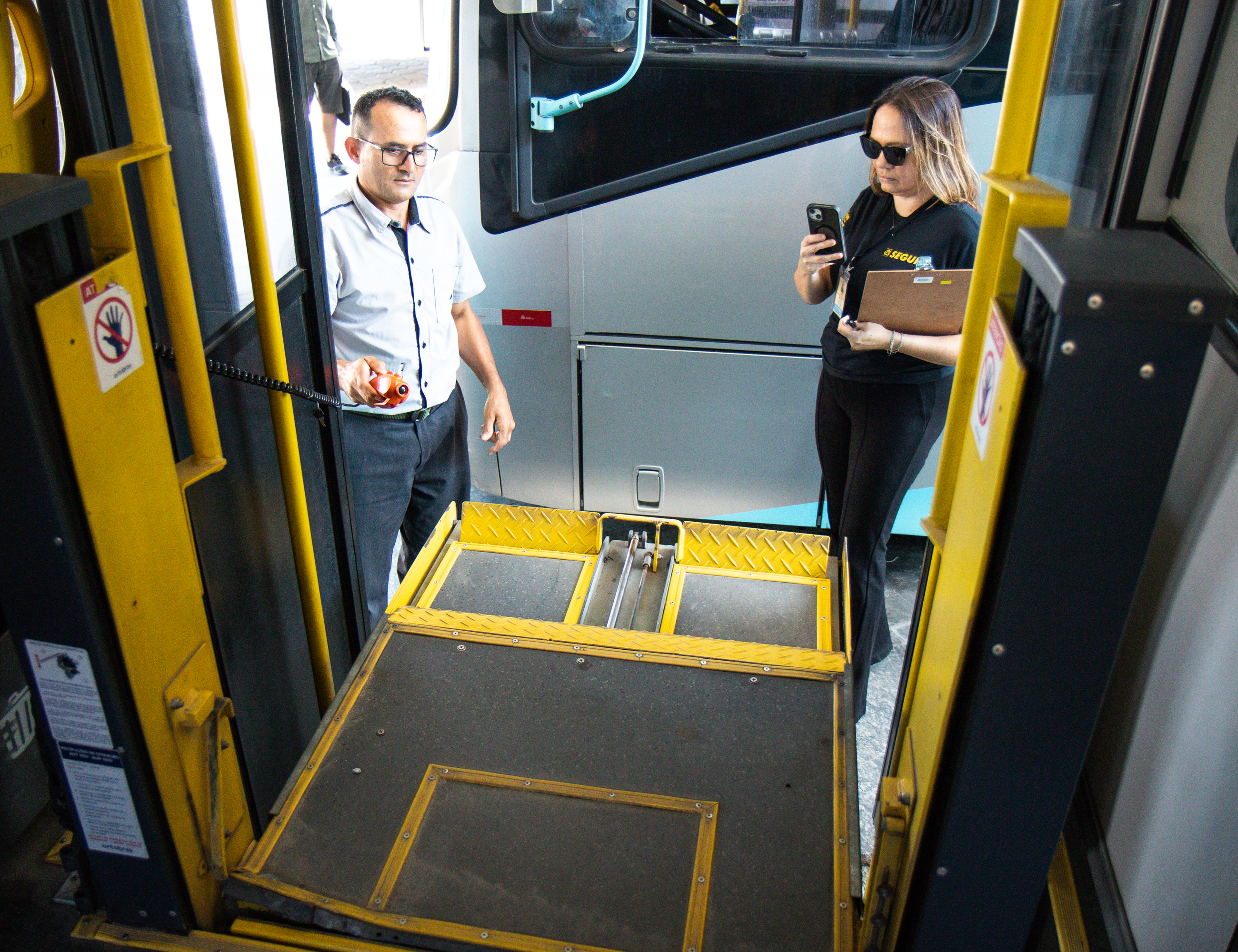 Durante a fiscalização, foram identificadas irregularidades em dois veículos. Um deles apresentou falha no sistema de aquecimento, enquanto outro registrou problema na rampa do elevador de acessibilidade. Ambos foram imediatamente encaminhados para manutenção.