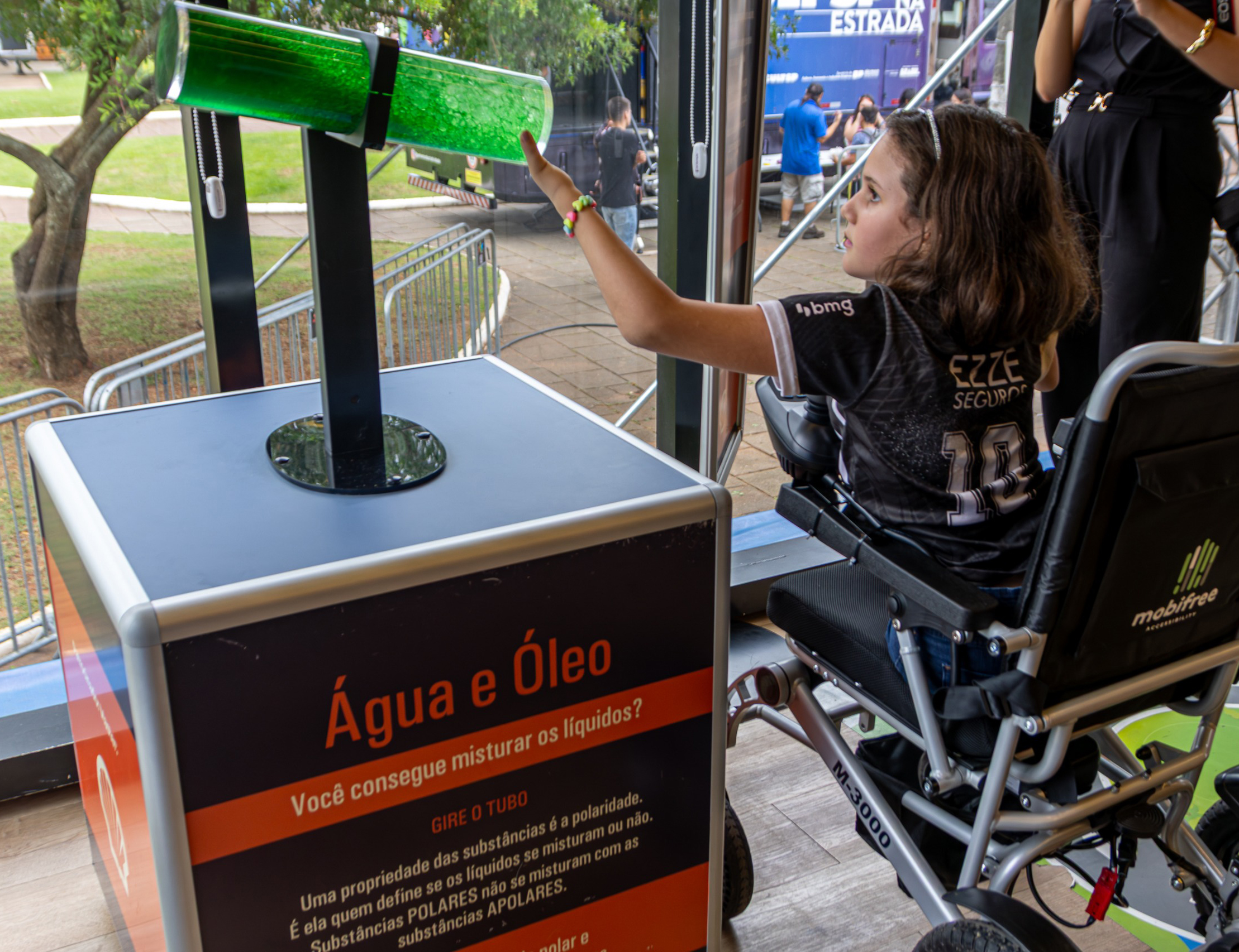 atrações interativas nas áreas de física, química, biologia, geografia e