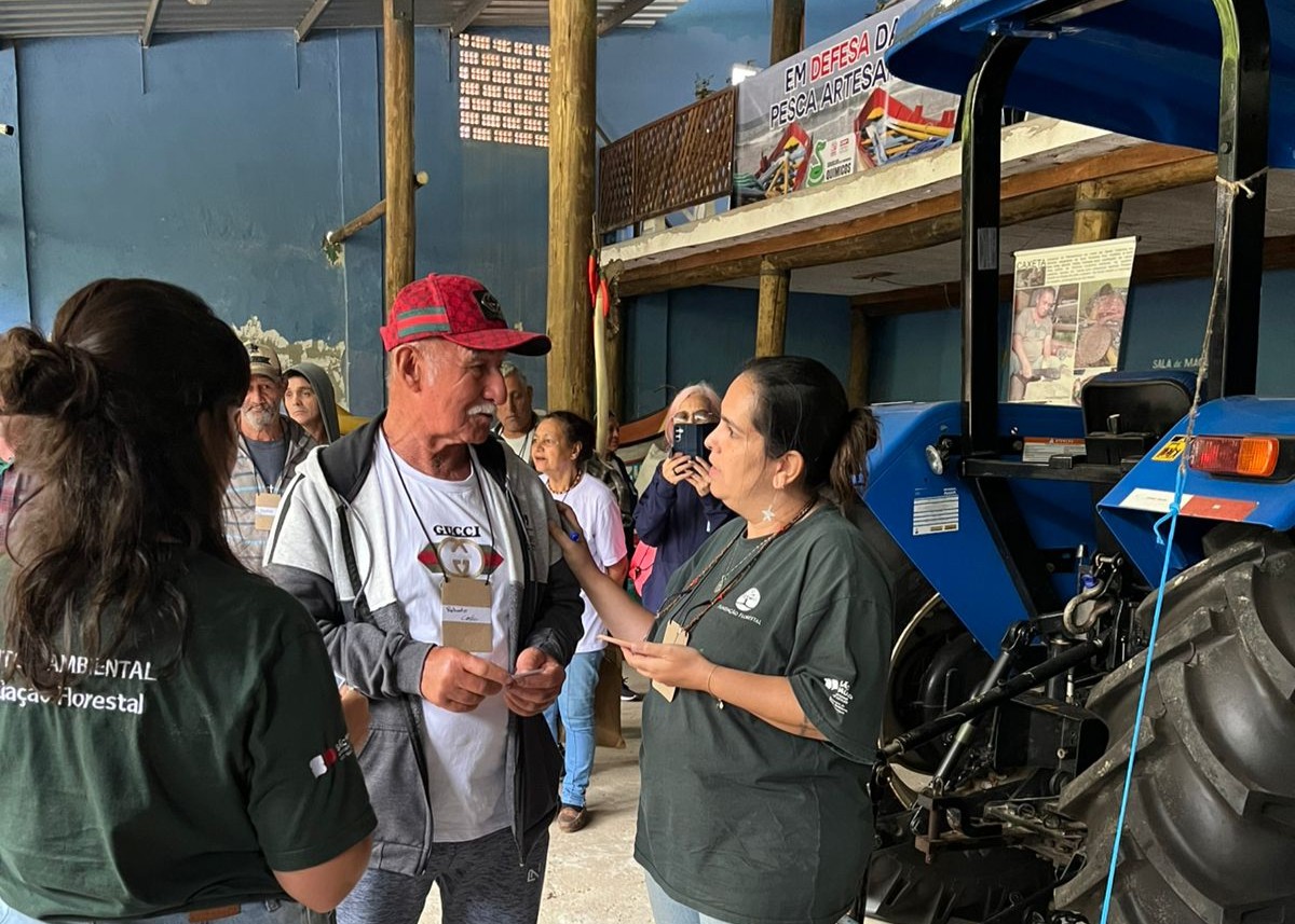 #PraTodosVerem: Pescadores e pescadoras artesanais participaram da entrega de documentação realizada pela Fundação Florestal, por meio da Área de Proteção Ambiental Marinha do Litoral Norte (APAMLN), em evento promovido no rancho da Associação dos Pescadores de Boicucanga (APB), em São Sebastião. As imagens mostram painéis explicativos sobre a regulamentação do cerco flutuante, técnicos da Fundação orientando os participantes, e o grupo reunido em clima de integração e valorização da pesca artesanal caiçara. Fim da descrição.