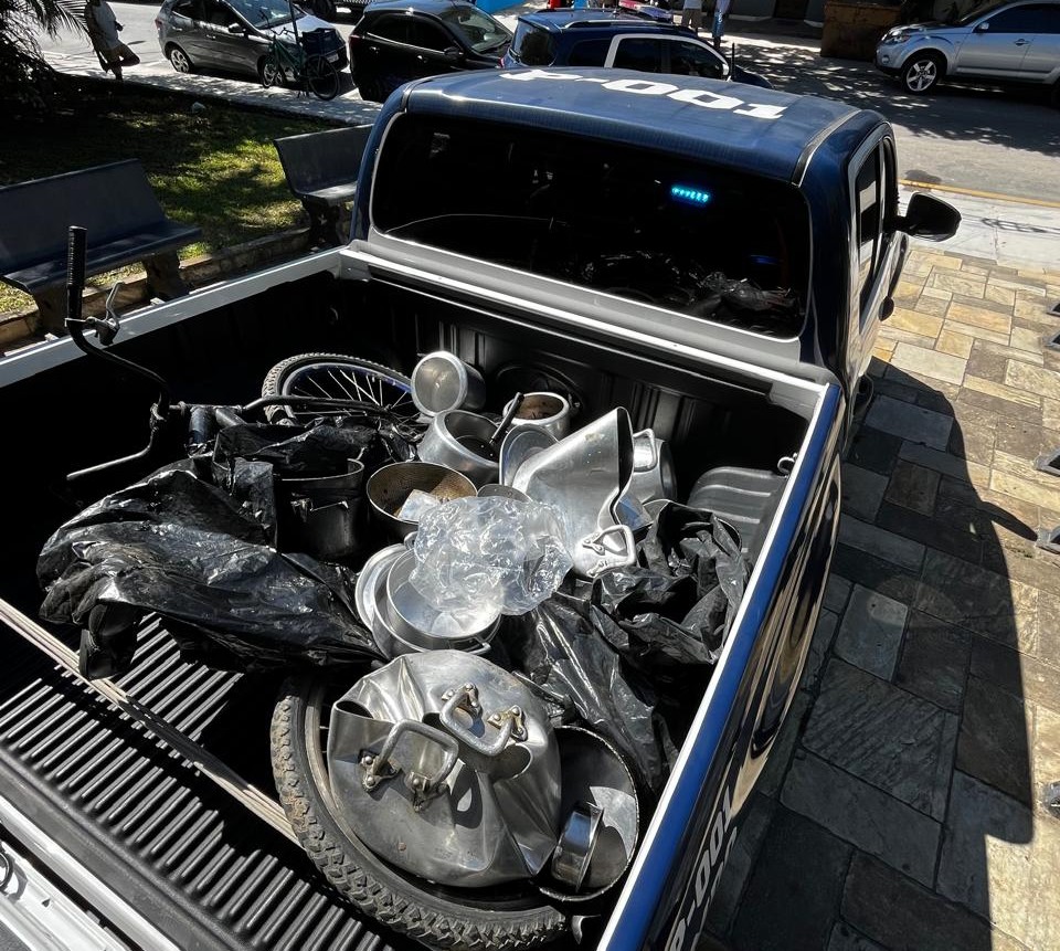 Lá, estavam N.P.C., 26 anos, G.M.S., 30 anos, e G.P.B., 35 anos, além do dono do ferro-velho, A.T.S., 57 anos, que indicou aos policiais municipais onde estavam os produtos do furto – panela, chaleira, leiteira e forma., momento que foi indicada a residência de J.E.T., 62 anos.