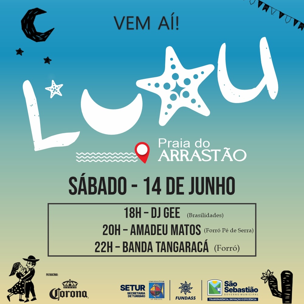 Neste sábado (14/6), a partir das 18h, a praia do Arrastão recebe mais uma edição do Luau Arrastão, prometendo reunir muita música boa à beira-mar. Em clima de festa junina, esta edição especial celebra o mês de junho com uma programação musical repleta de ritmos típicos da época.