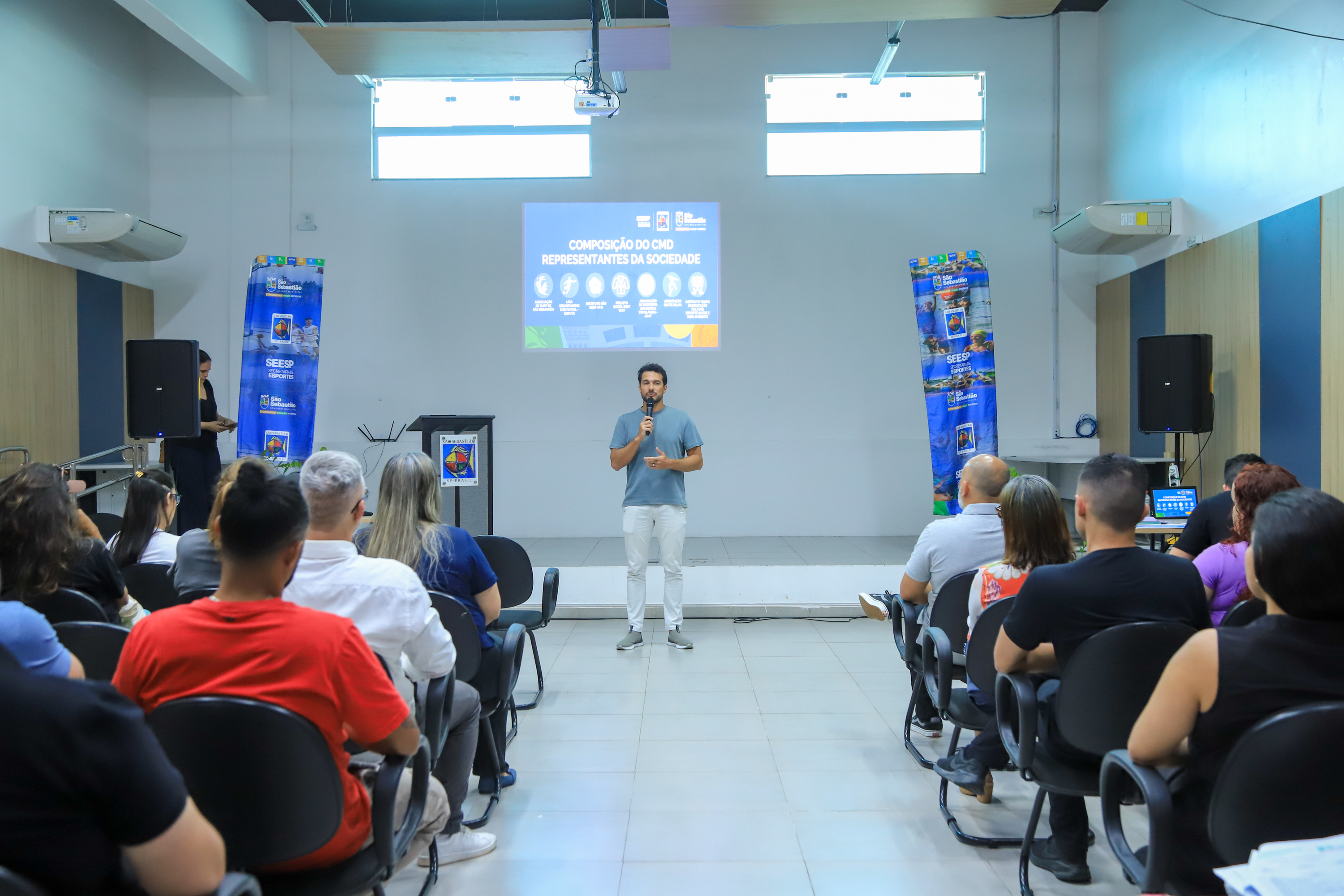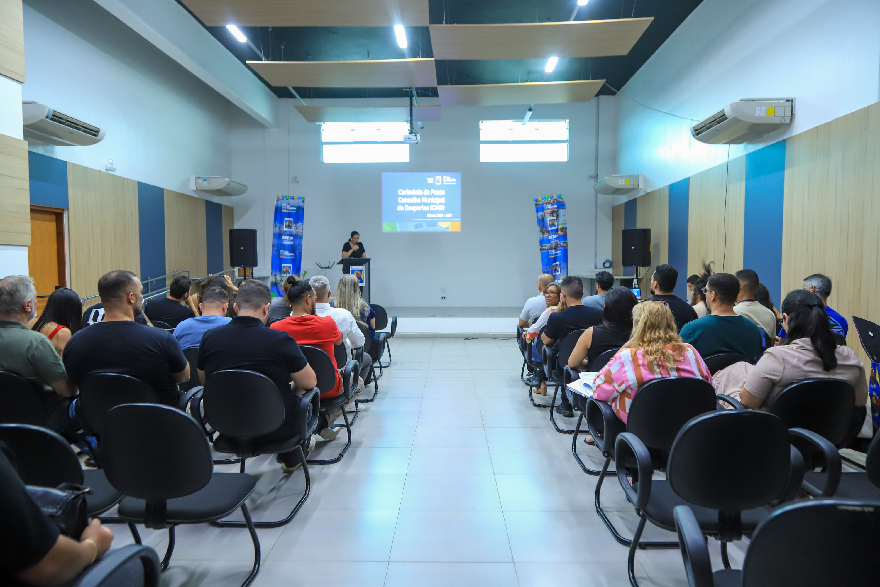 #PraTodosVerem: Fotos no Auditório da Educação de São Sebastião, da cerimônia de posse do Conselho Desportivo Municipal, que reuniu representantes de entidades eleitas e autoridades, em um momento marcado por falas institucionais e a presença de diversos membros da sociedade civil ligados ao esporte, que acompanharam atentos a programação e participaram do registro coletivo que simbolizou o início oficial das atividades do conselho. Fim da descrição.