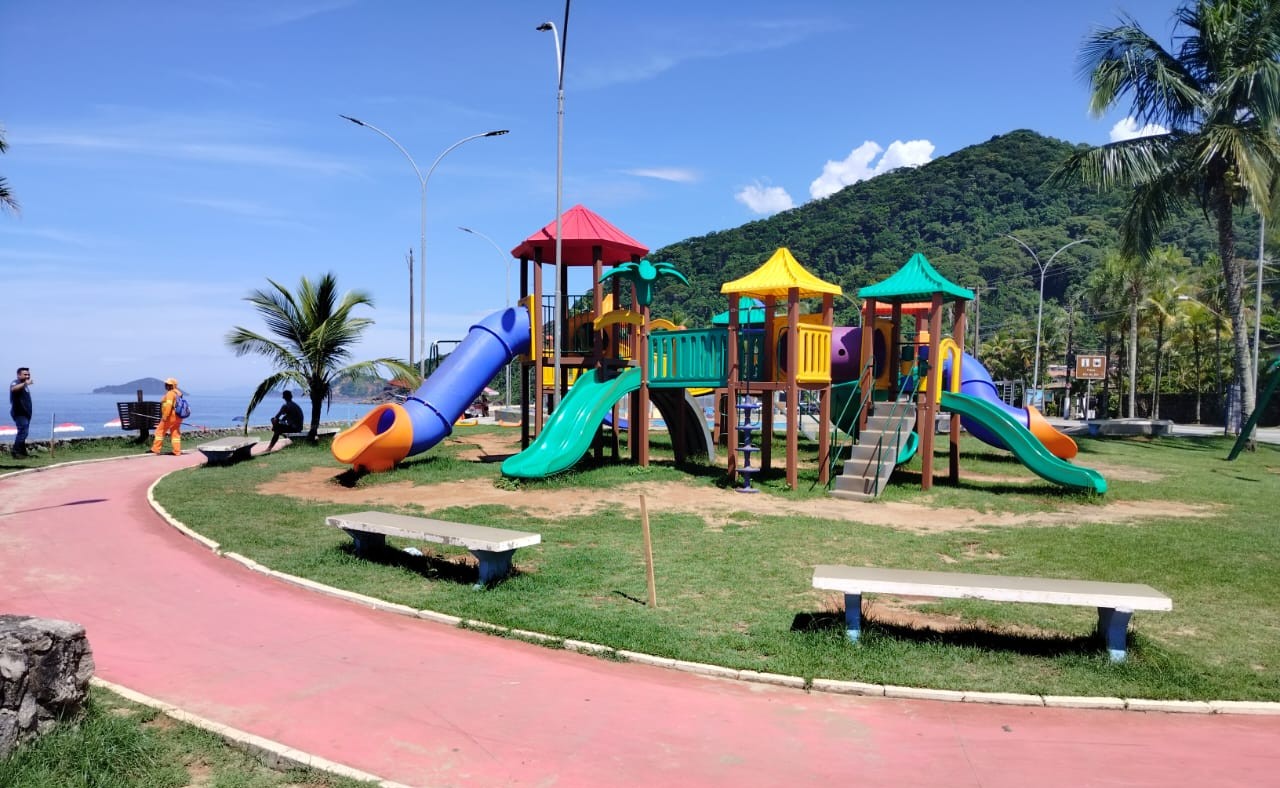#PraTodosVerem: Imagem da Praça do Pôr do Sol, em Boiçucanga, onde será realizado o plantio de árvores nativas. Fim da descrição.
