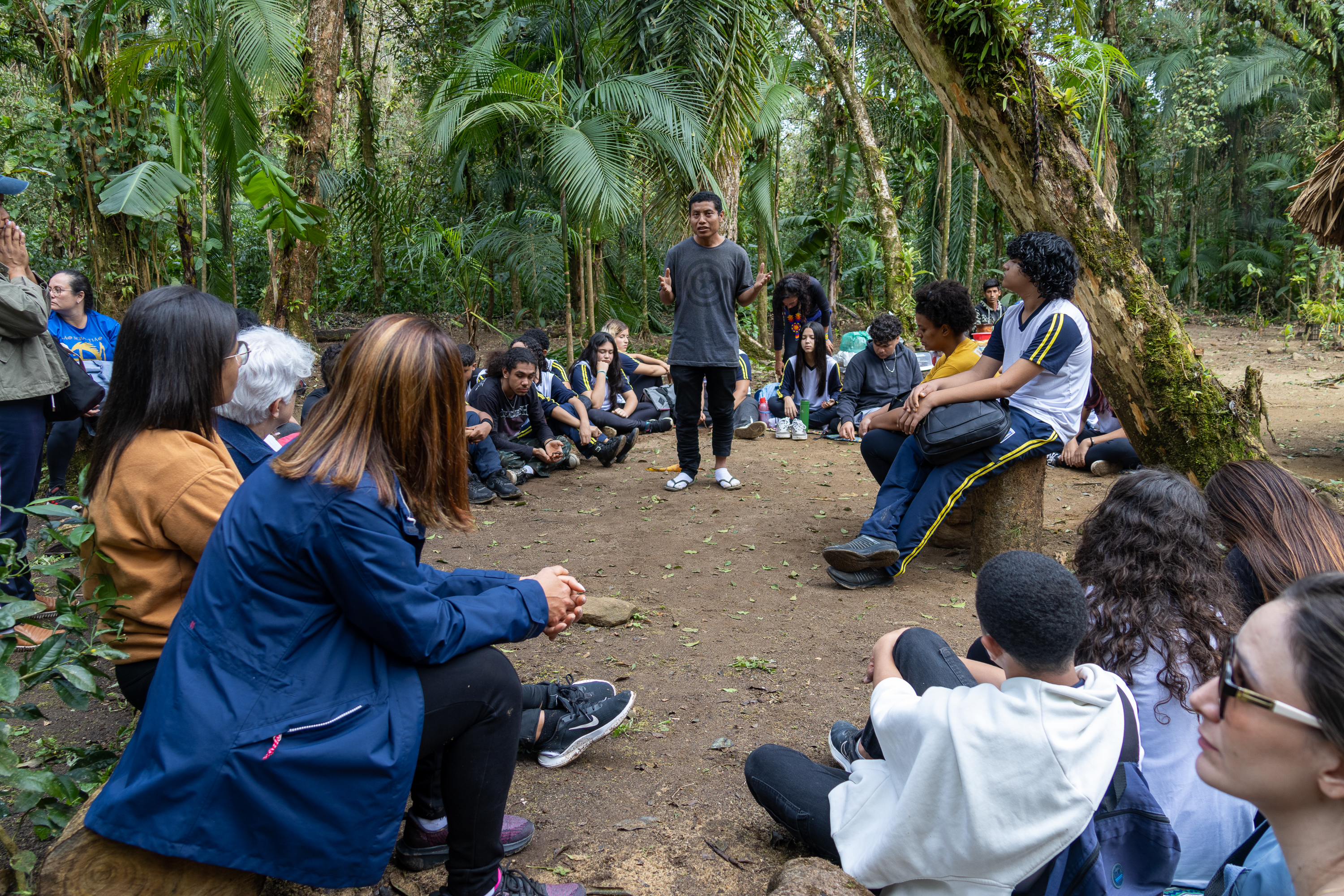 A vivência foi conduzida por Carlos Papa, coordenador da Escola Viva Guarani, e Cristine Takua, coordenadora geral das Escolas Vivas junto ao Instituto Selvagem. Durante o encontro, os estudantes participaram de reflexões, caminhadas pela mata, brincadeiras e interações com cânticos guarani, atividades que buscam estimular a concentração, a alegria e o que os povos originários chamam de Teko Porã, conceito filosófico, político, social e espiritual que expressa o viver em harmonia e respeito com a natureza.