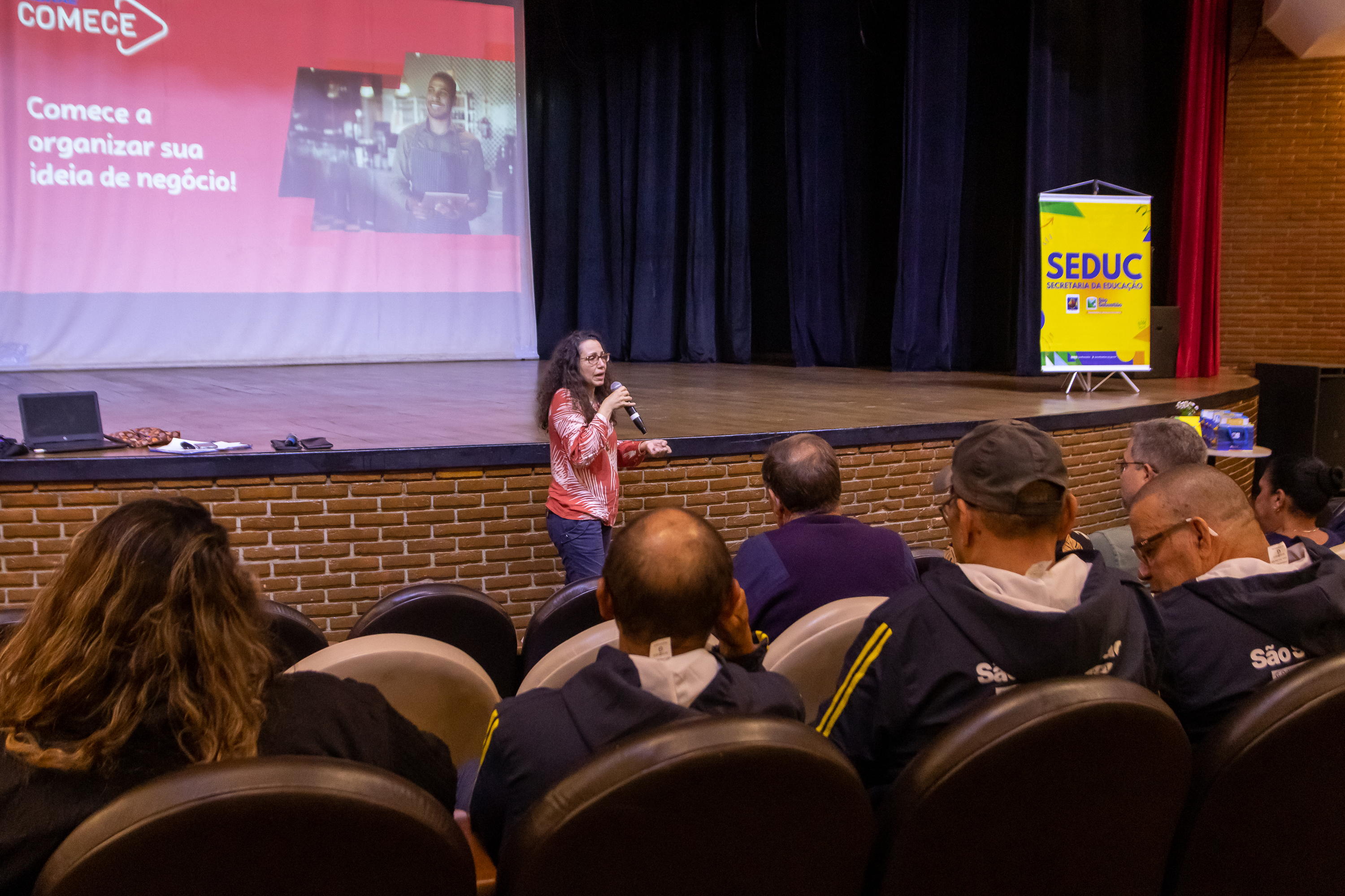 Com o tema “Comece a organizar sua ideia de negócio”, a oficina foi conduzida por especialistas do Sebrae, que utilizaram uma linguagem acessível e exemplos práticos do cotidiano para abordar conceitos de educação financeira, planejamento e empreendedorismo. A proposta foi promover reflexões sobre autoconfiança, organização de ideias e a possibilidade de transformar habilidades em oportunidades.