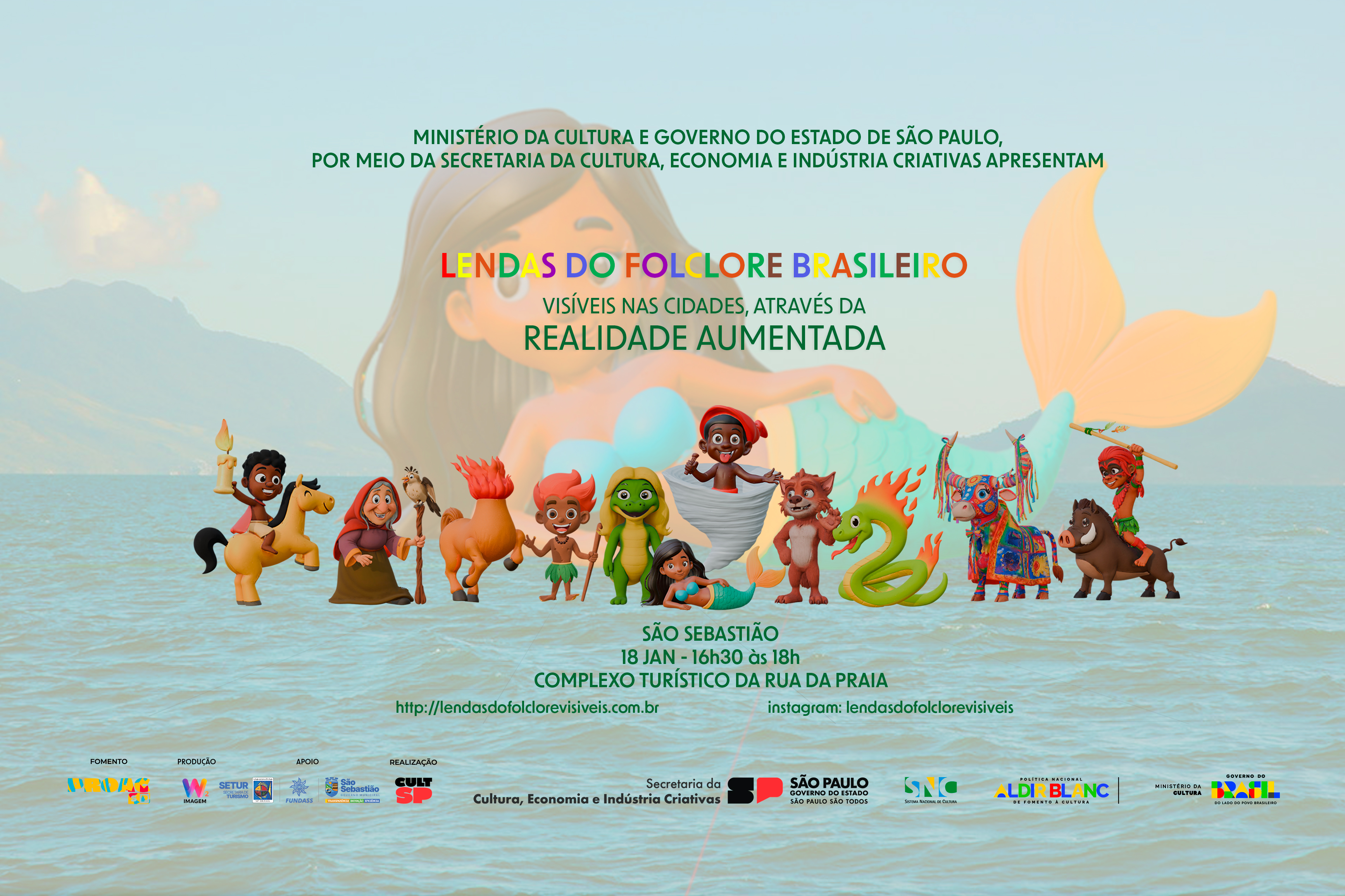 O município de São Sebastião recebe, neste domingo (18/01), o projeto ‘Lendas do Folclore Brasileiro Visível nas Cidades, através de Realidade Aumentada (RA)’, uma experiência cultural gratuita que une tecnologia, arte e tradição popular. A atividade ocorre das 16h30 às 18h, no quiosque para visitantes na Praça do Artesão do Complexo Turístico da Rua da Praia, no Centro Histórico.