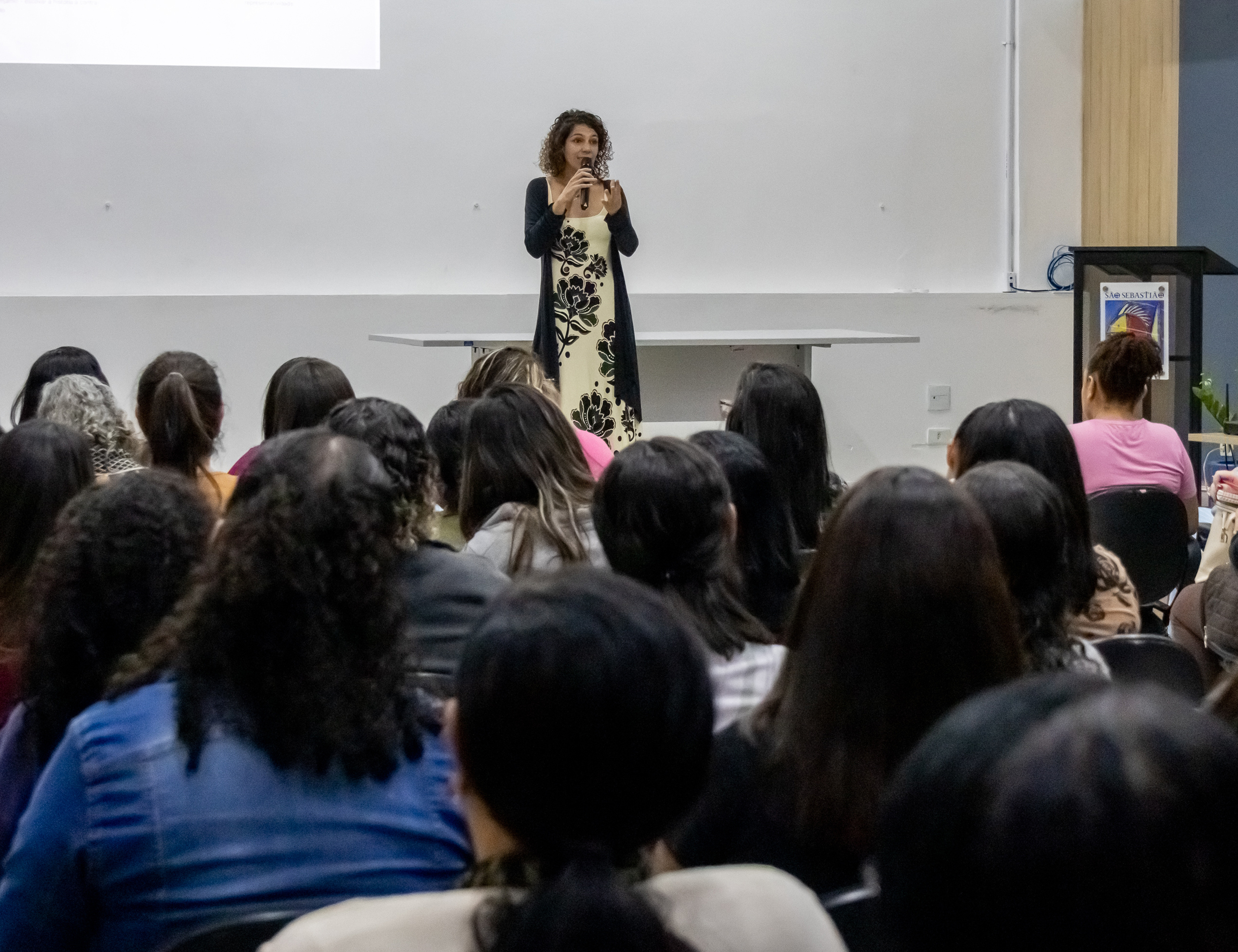 Citando autores como Chimamanda Ngozi Adichie, Walter Benjamin, Grada Kilomba e Ailton Krenak, a professora evidenciou como estereótipos e apagamentos culturais afetam diretamente a autoestima e o desenvolvimento das crianças.