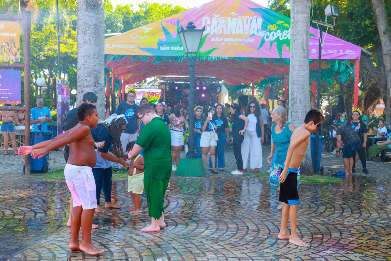 O jovem Pedro Barbosa de Alencar Menezes, 14 anos, é autista e chamou atenção com sua fantasia de policial. Todo caracterizado, ele circulou pela praça, interagiu com as pessoas e aproveitou a folia do seu jeito, mostrando que o Carnaval é, acima de tudo, um espaço para todos.