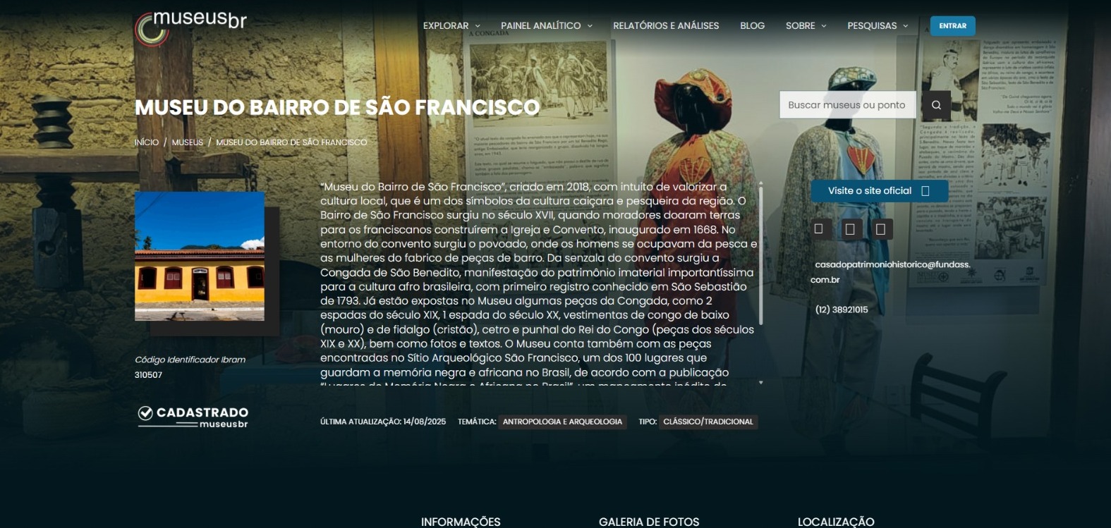 Acesse o link para conhecer o Cadastro Nacional de Museus: https://cadastro.museus.gov.br/museus/museu-do-bairro-de-sao-francisco/