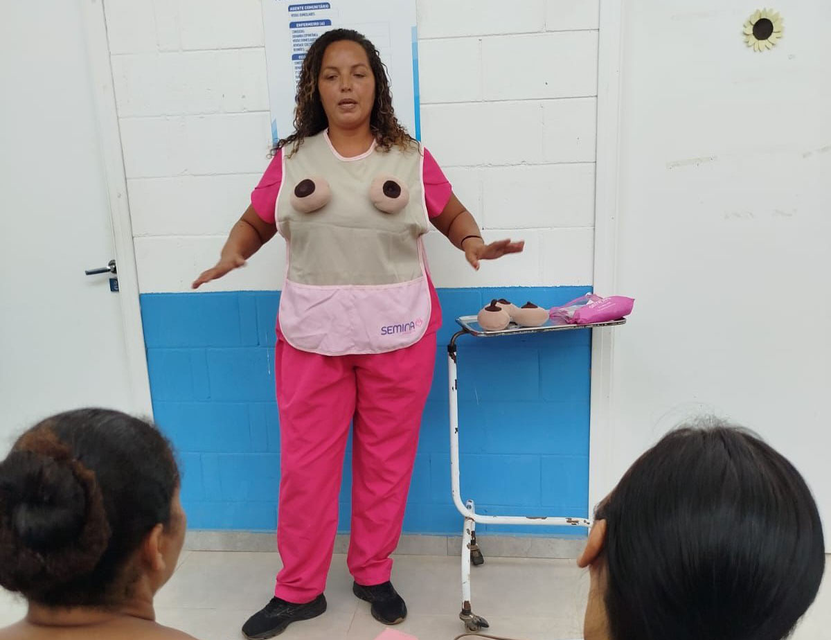 #PraTodosVerem: Estratégias da Fundação de Saúde Pública de São Sebastião aproximam as mulheres do autocuidado incentivando a realizam dos exames de mamografia neste Outubro Rosa. Iniciativa acontece durante os 12 meses do ano. Fim da descrição.