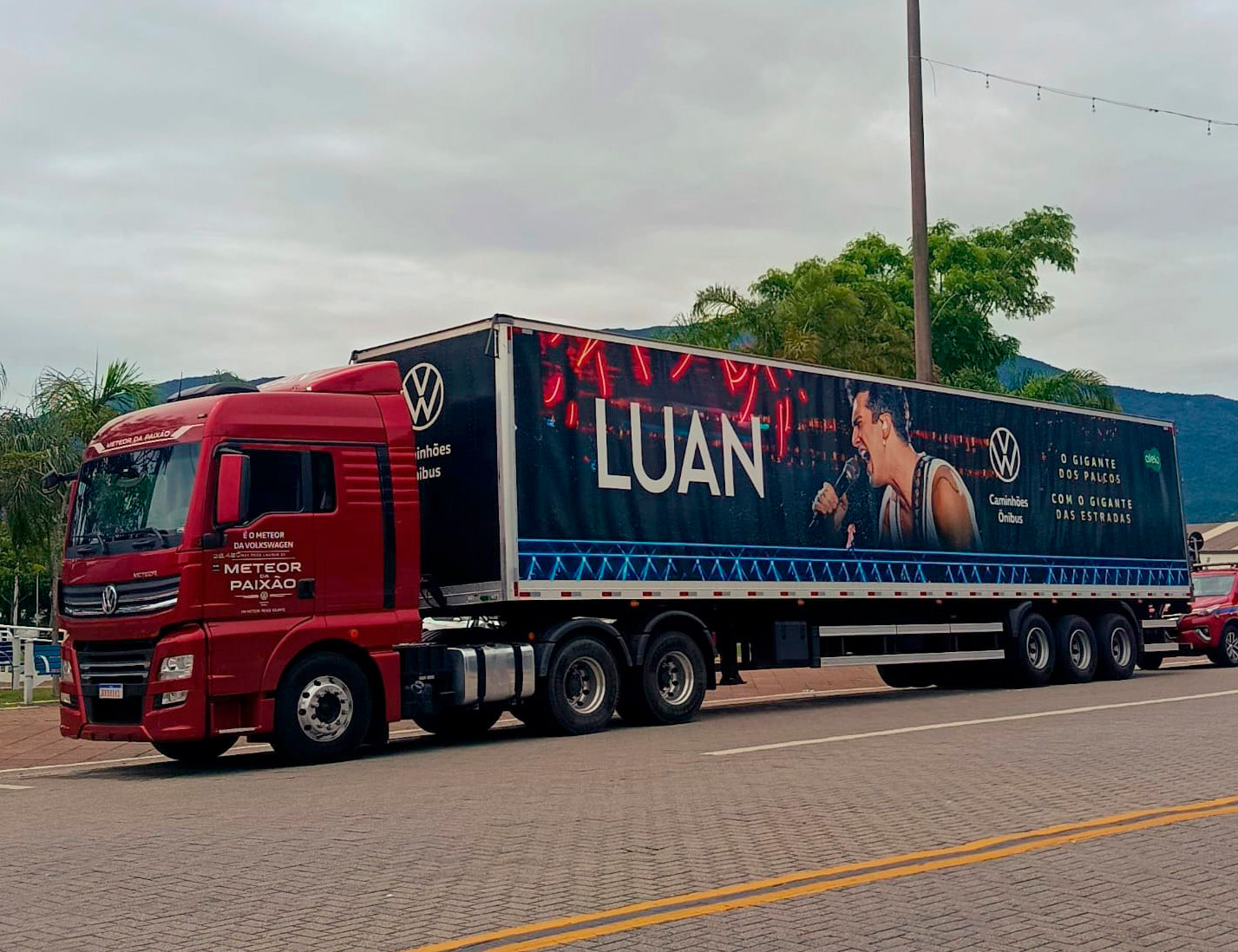 #PraTodosVerem: Fotos mostram o palco de um show ao ar livre, fãs de Luan Santana posando em frente à grade, o espaço ainda em organização e um caminhão personalizado com a imagem do cantor. O clima é de expectativa e alegria dos fãs aguardando o show. Fim da descrição.