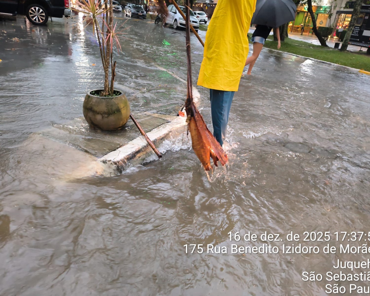 A Prefeitura de São Sebastião informa que o alto volume de chuva que caiu entre o final da tarde de terça-feira e a madrugada desta quarta-feira (16 e 17/12) ultrapassou os 163 milímetros, o que equivale a 163 litros por metro quadrado. Bairros como Toque-Toque Pequeno, Paúba, Boiçucanga, Maresias, Barra do Una, Itatinga, Barequeçaba e Juquehy foram os mais afetados.