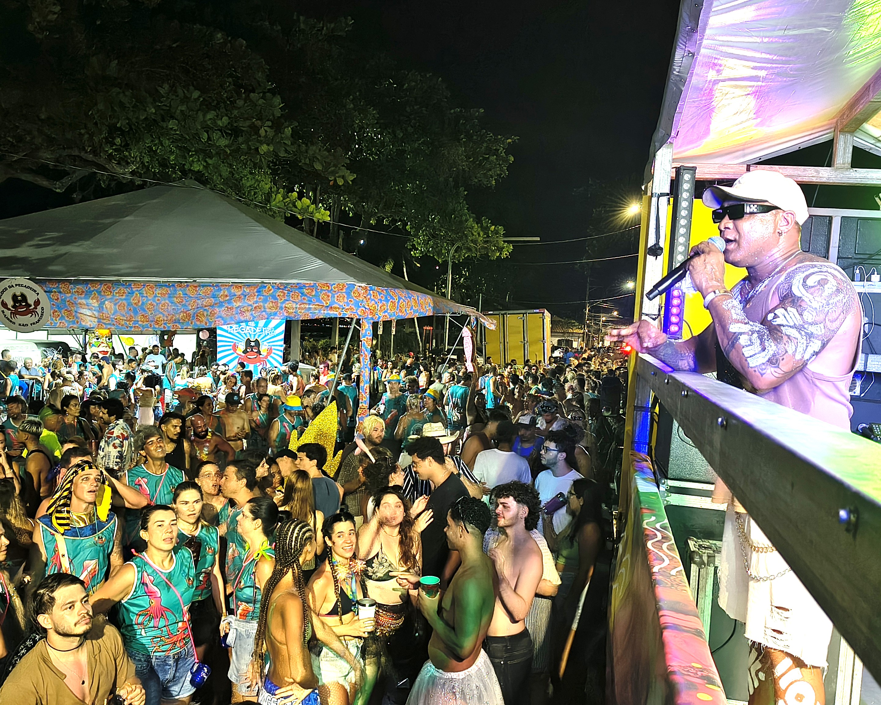 Criado há cerca de cinco anos, o bloco vem ampliando sua participação a cada edição. Antes, saía como Bloco da Panela, em homenagem às tradicionais paneleiras do São Francisco. A mudança para Pegadeira veio como referência à pesca da lula, prática marcante da cultura local. “Quando tem muita lula, o pessoal diz que está na pegadeira. E hoje, graças a Deus, está dando muita gente aqui no Pegadeira”, explicou Patu.