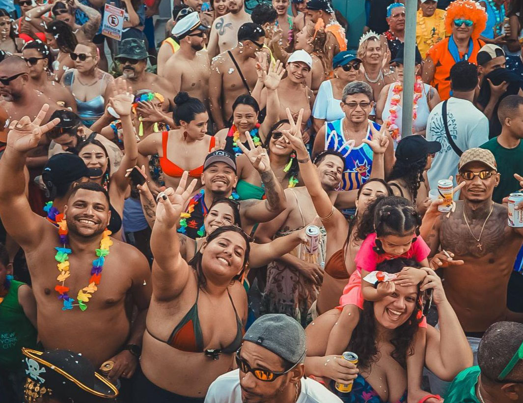 Foliões, turistas e moradores acompanharam o cortejo pelas ruas do bairro e encerraram a celebração com o tradicional banho coletivo no mar, um dos momentos mais aguardados da festa.