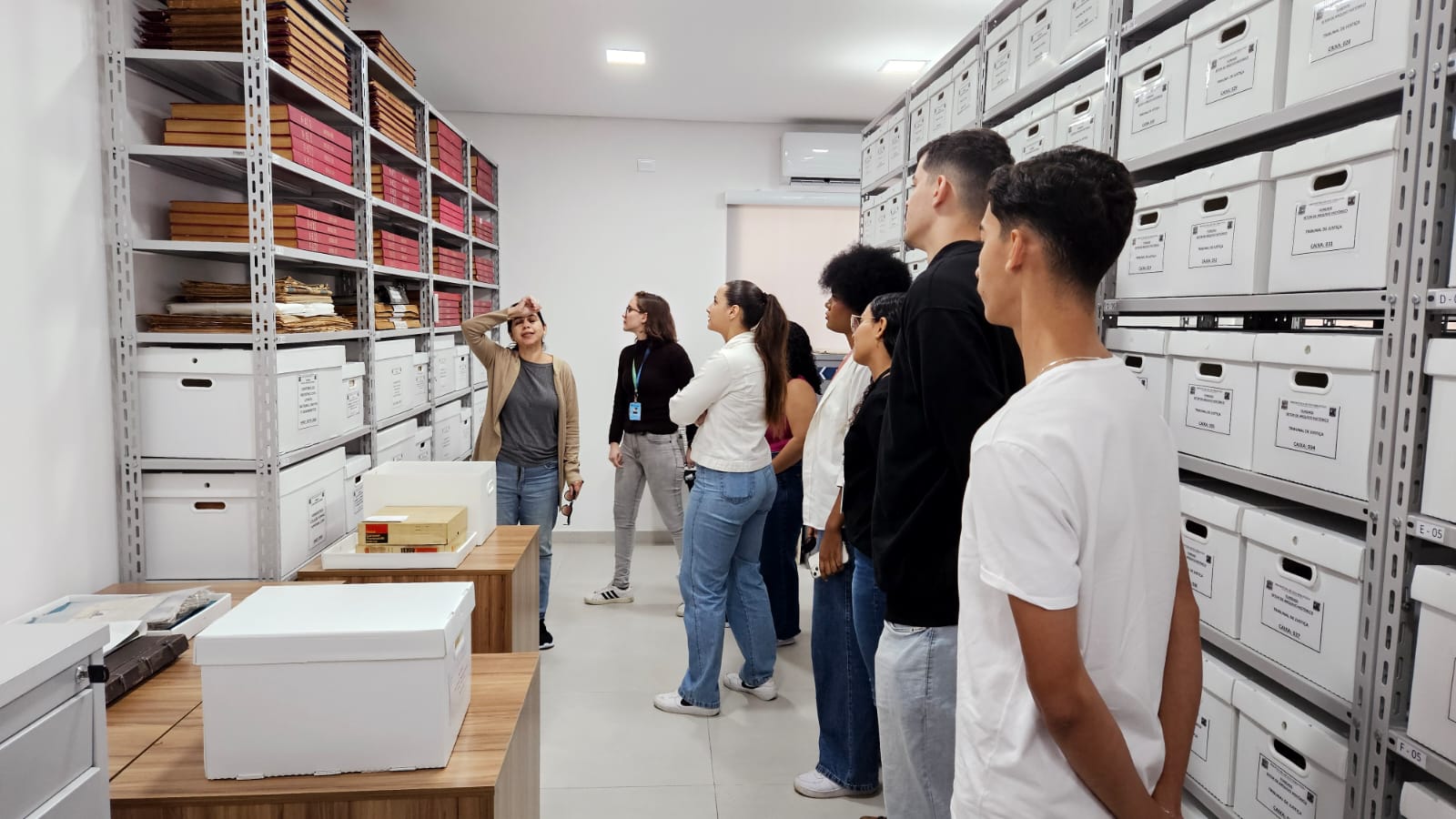 Os estagiários também visitaram o Arquivo Histórico Municipal, onde estão preservados documentos que datam desde 1733 até a década de 1960. O acervo inclui registros do Tribunal de Justiça, Cartório de Registro Civil, arquivos pessoais de figuras públicas da cidade e edições do extinto jornal Imprensa Livre.