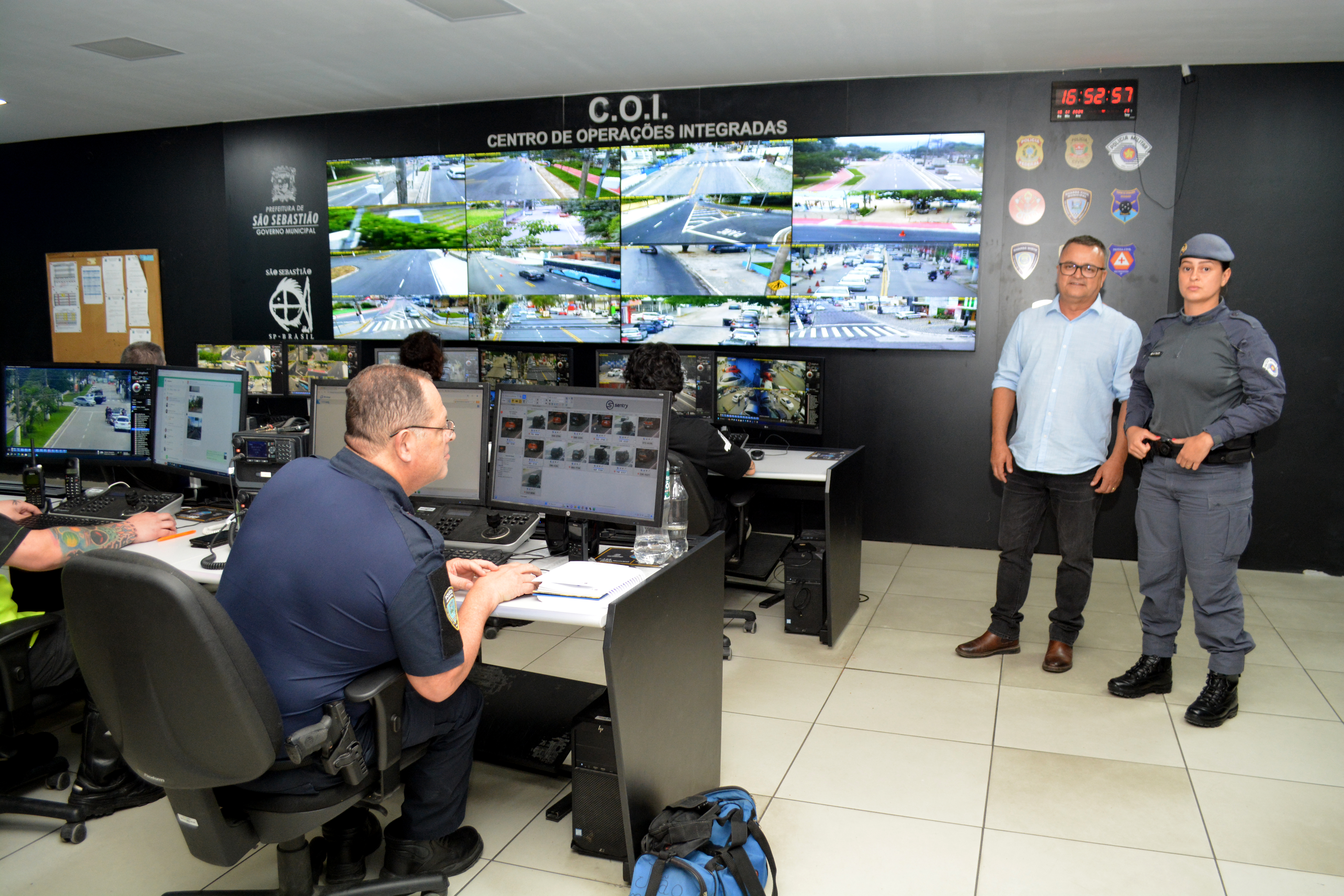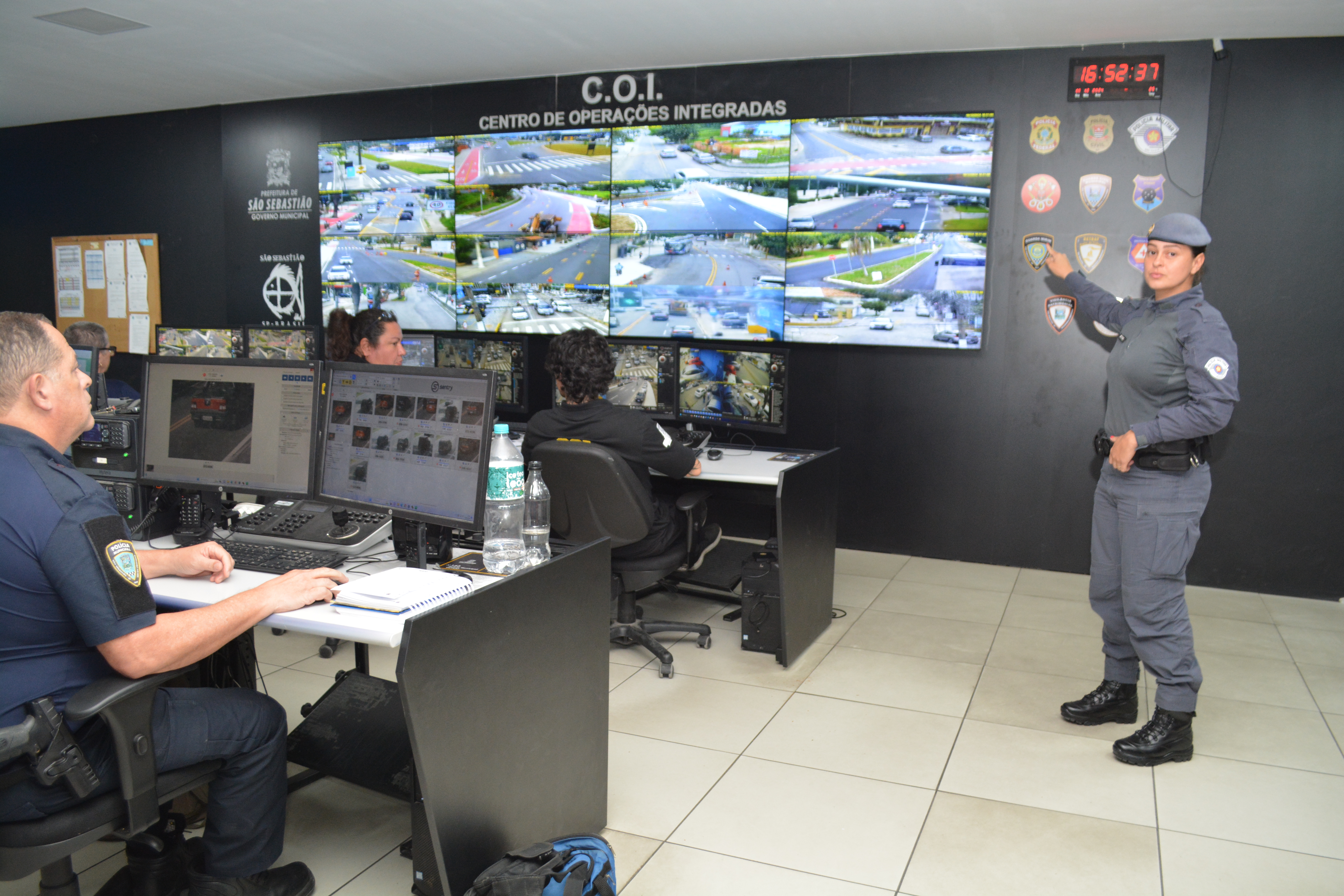 O Centro de Operações Integradas (COI) da Prefeitura de São Sebastião terá a presença de um policial militar 24 horas por dia durante toda a temporada de verão. A iniciativa visa agilizar o atendimento a ocorrências identificadas por meio das câmeras de monitoramento ou ligações que chegam pelo telefone 153, da Polícia Municipal.