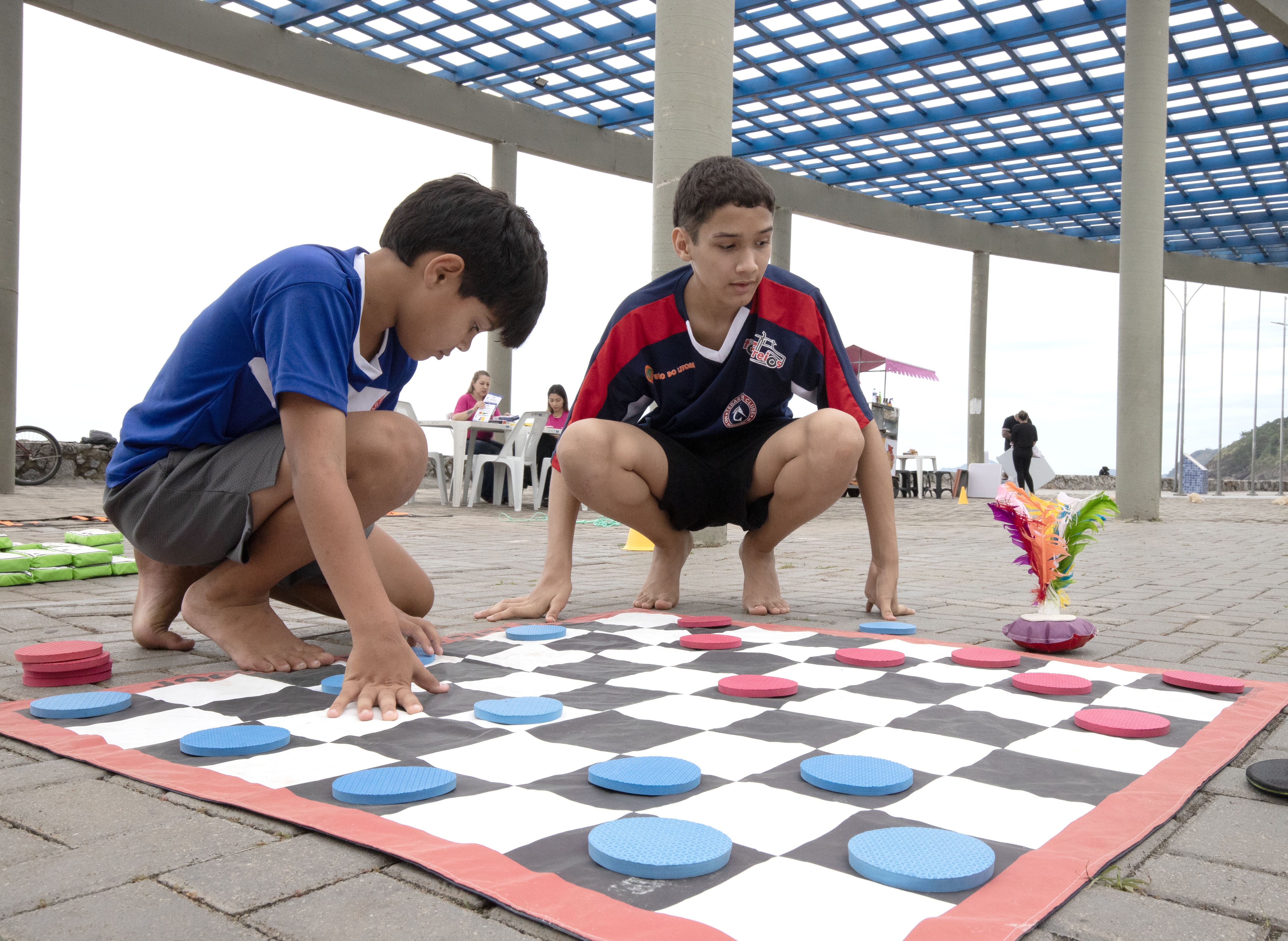As crianças se divertiram na Estação Brincadeiras Antigas, que resgatou jogos tradicionais como queimada, corrida de saco, pula corda, amarelinha, cabo de guerra, taco (bets) e jogos de tabuleiro, tudo com acompanhamento de monitores da Seesp.