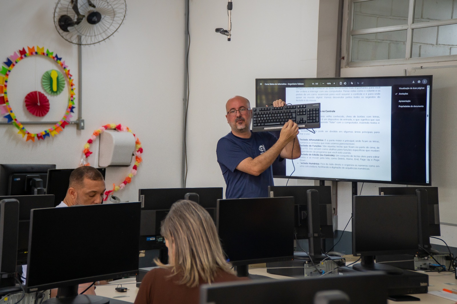 Durante a primeira aula do curso, Fabiano Santos abordou um conteúdo programático englobando a introdução à informática; uso de sistemas operacionais e a navegação segura na internet.
