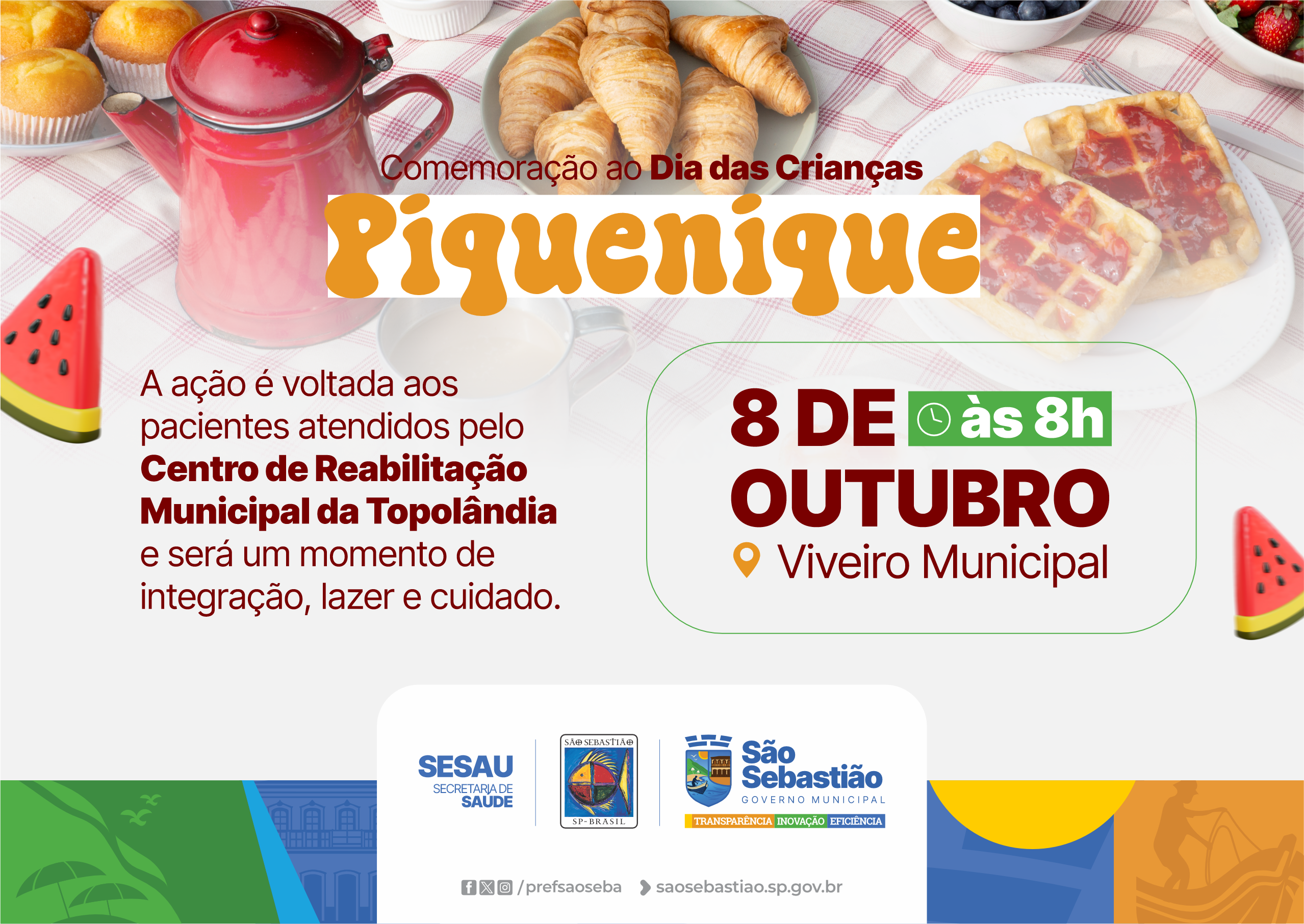 A Prefeitura de São Sebastião, por meio da Secretaria de Saúde (Sesau), está nos ajustes finais de um piquenique especial que será realizado no Viveiro Municipal, na próxima quarta-feira (8/10) para comemorar o Dia das Crianças.