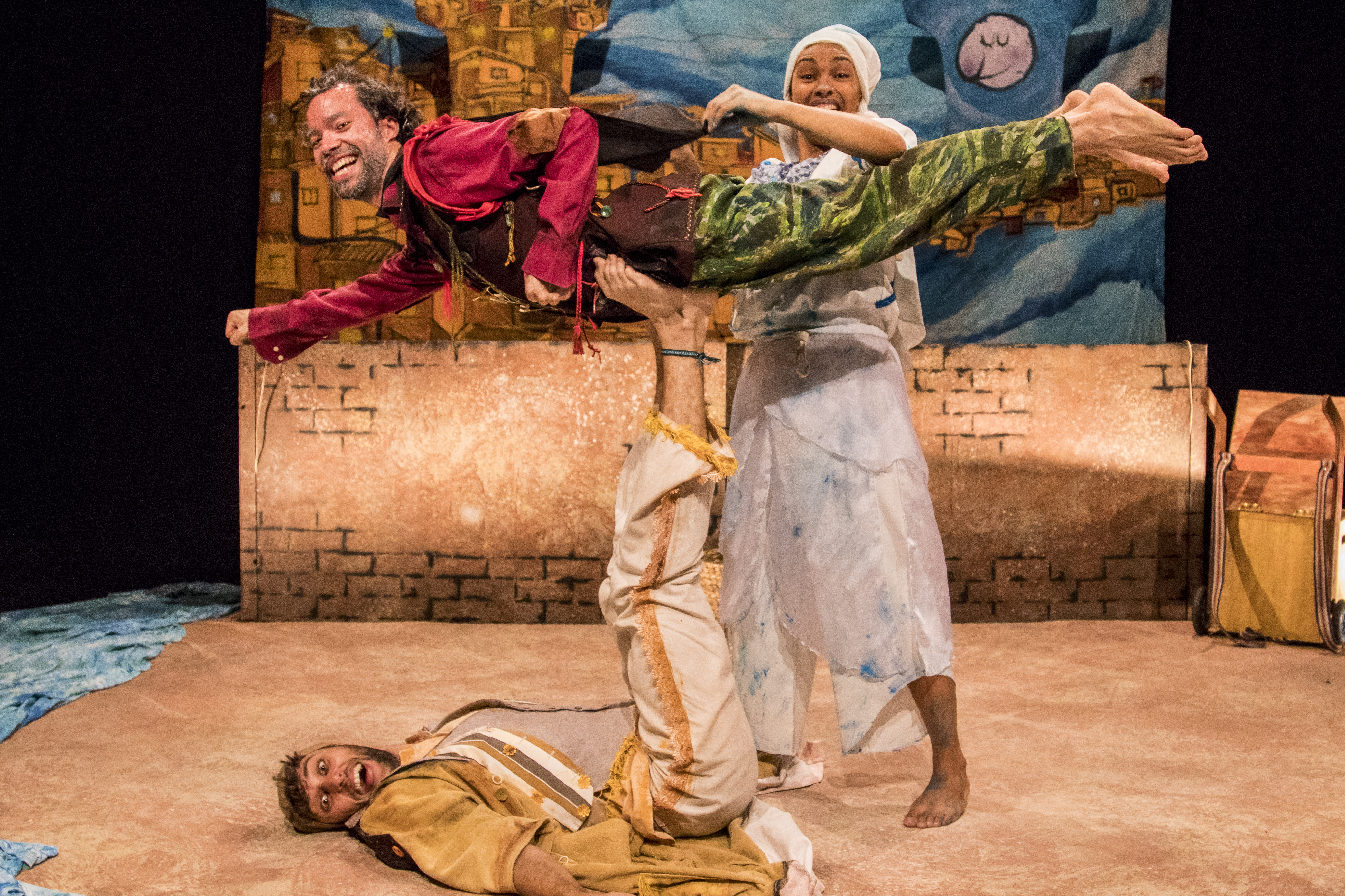 Para alvejar a trama, que mistura circo, teatro de sombras e contação de histórias, o trio de atores-palhaços combinou três elementos na mesma lavagem artística: a inspiração de poemas de Manoel de Barros, aquele mesmo poeta que afirmava que em sua vida ‘só teve infância’; as memórias e lembranças autobiográficas de cada ator da montagem; e as vivências e os causos recolhidos durante o laboratório do elenco no bairro São Mateus, localizado na Zona Leste de São Paulo, considerado o local de atuação da companhia teatral desde a sua fundação.