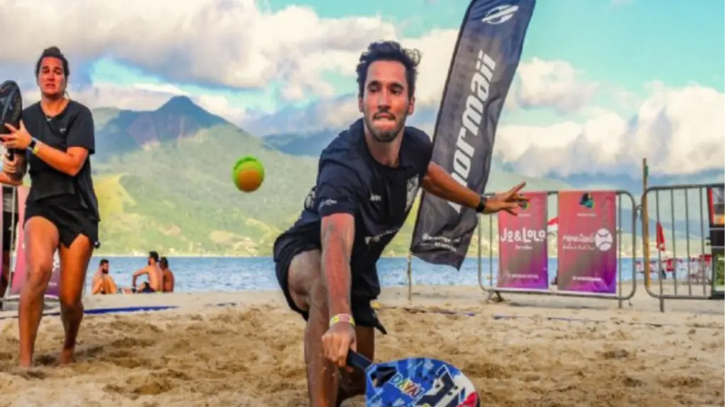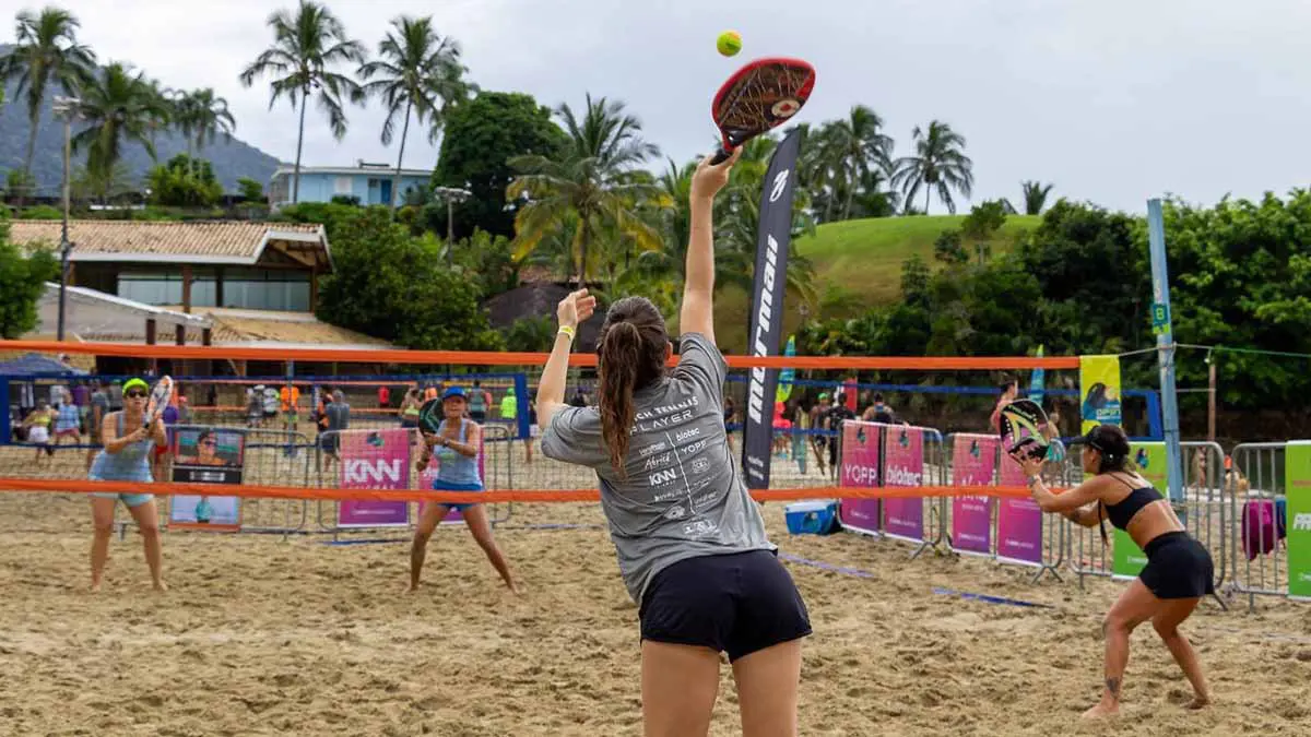 #PraTodosVerem: imagens de atletas sebastianenses jogando beach tennis. Fim da descrição.