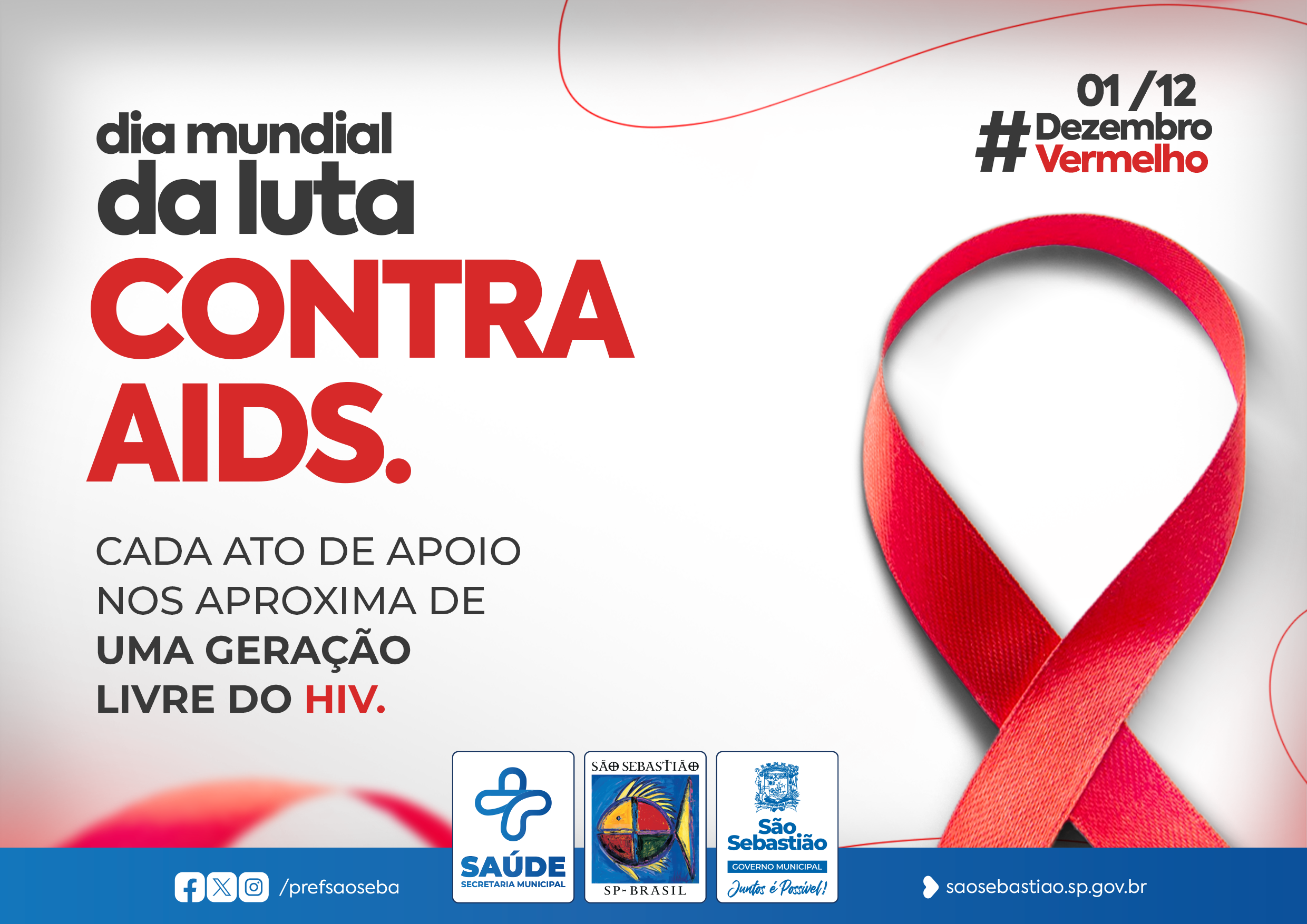 Para reforçar estas ações, a Prefeitura de São Sebastião, por meio da Secretaria de Saúde (SESAU), preparou uma vasta programação nas Unidades de Saúde da Família (USFs) do município dentro da temática “Cada ato de apoio nos aproxima de uma geração livre do HIV”.