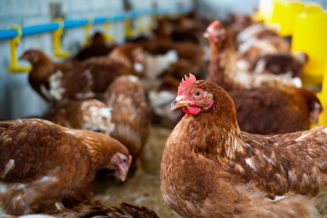 #PraTodosVerem: imagem de galinhas em granja. Fim da descrição.