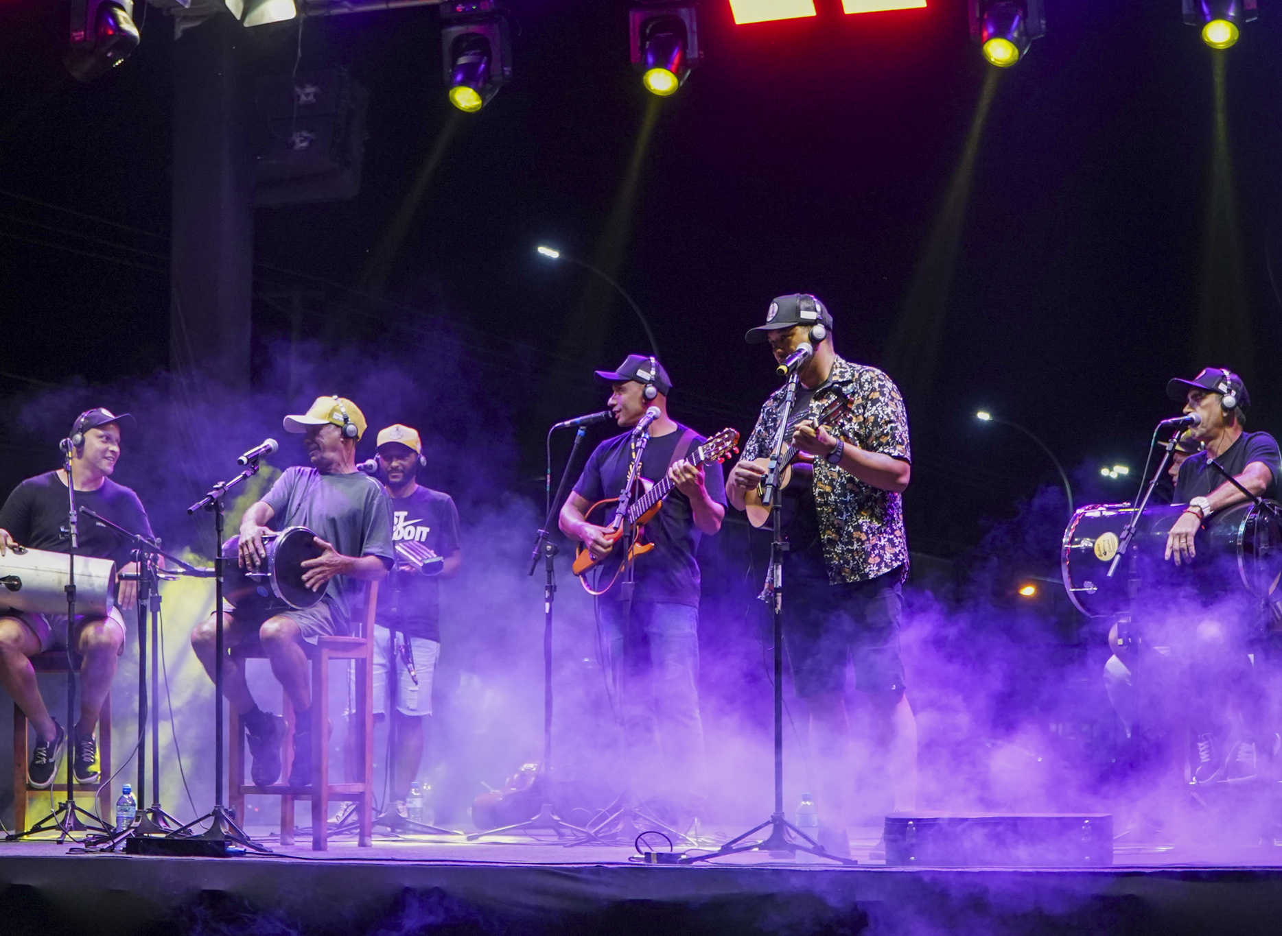 A programação começou às 20h, com a apresentação do Grupo Samba Caiçara, que abriu a festa embalando o público com clássicos do gênero e sucessos populares. Às 22h, a atração principal ficou por conta do cantor Lucas Morato, que subiu ao palco trazendo sua energia e repertório de sambas consagrados, animando moradores e turistas presentes.