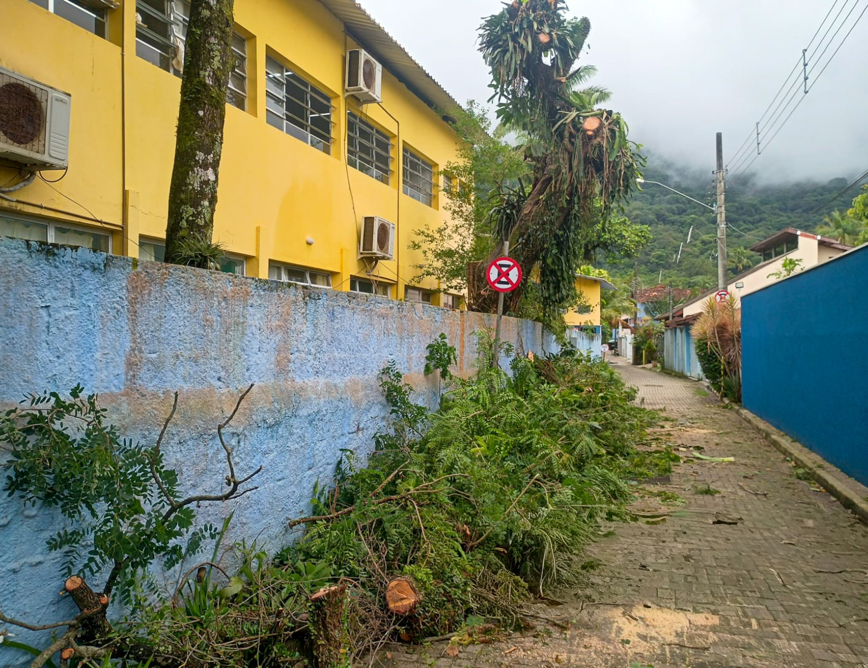 Durante a madrugada de domingo (23) para segunda-feira (24), o município registrou cerca de 80 mm de chuva com ventos, causando queda de árvores nos bairros Cambury e Toque-Toque Pequeno, na Costa Sul, sem ocorrências graves.