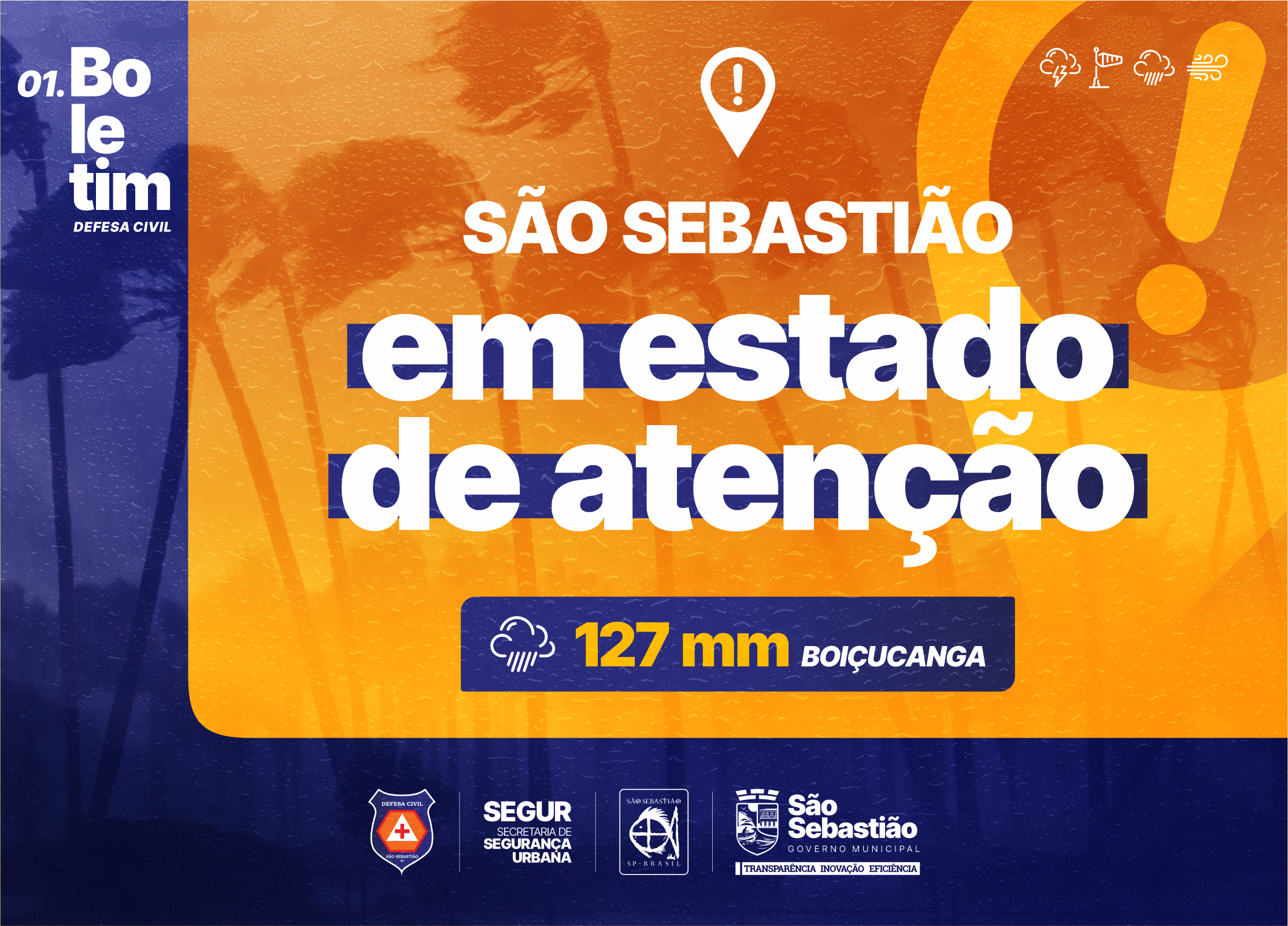 Diante das fortes chuvas que atingiram a Costa Sul de São Sebastião no final da tarde deste domingo (25/1), o prefeito Reinaldinho Moreira determinou a abertura do Gabinete de Crise para o acompanhamento em tempo real da situação e a coordenação das ações emergenciais no município. A cidade está em estado de atenção.