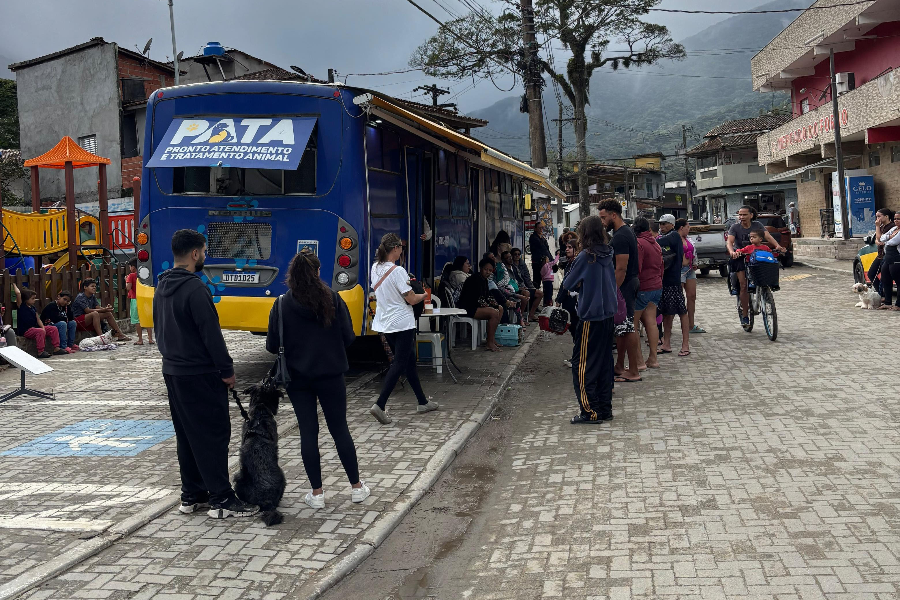 #PraTodosVerem: imagens mostram o atendimento veterinário gratuito realizado pelo Pata Móvel, um ônibus adaptado que percorre os bairros de São Sebastião oferecendo cuidados com carinho e muito amor aos pets da população. Agenda de setembro foi divulgada nesta segunda-feira. Fim da descrição.