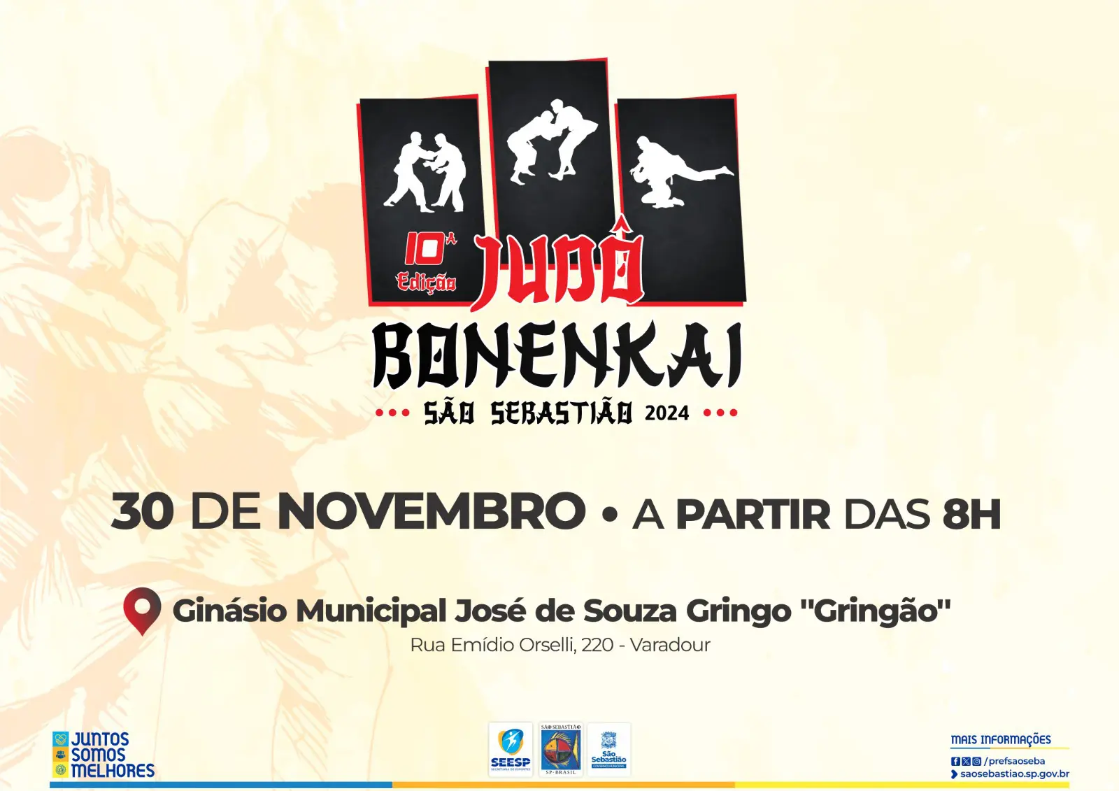 A 10ª Edição do Bonenkai de São Sebastião promete reunir grandes nomes do judô de todo o Estado de São Paulo. Idealizado pela sensei Rogéria Cozendey, judoca renomada e que já disputou inúmeras vezes o campeonato mundial de veteranos, o evento conta com apoio da Prefeitura de São Sebastião, por meio da Secretaria de Esportes (SEESP), e ocorre no Ginásio Municipal José de Souza, o ‘Gringão’, no sábado (30), a partir das 10h.