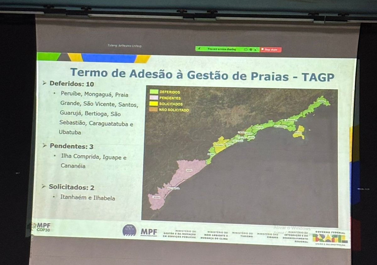 A constatação ocorreu durante a 6ª Oficina de Capacitação em Gestão de Praias realizada nos dias 24 a 26 de junho pelo Ministério da Gestão e Inovação em Serviços Públicos, por meio da Secretaria de Patrimônio da União (SPU), em Santos.
