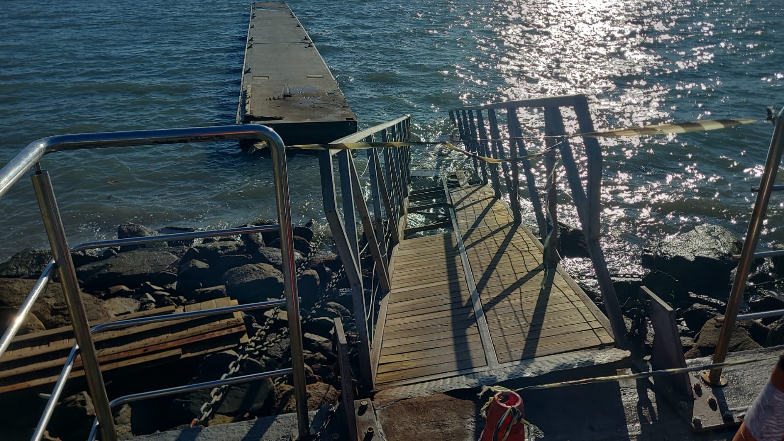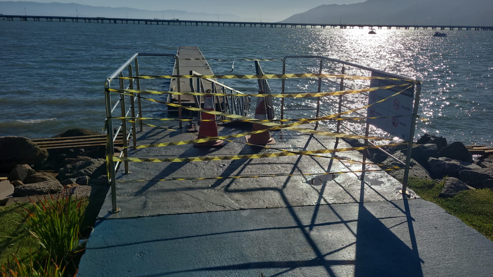 A estrutura foi danificada devido aos fortes ventos e à intensidade da maré registrados nos últimos dias. Por medida de segurança, a interdição foi realizada pela Defesa Civil, que segue acompanhando a situação.
