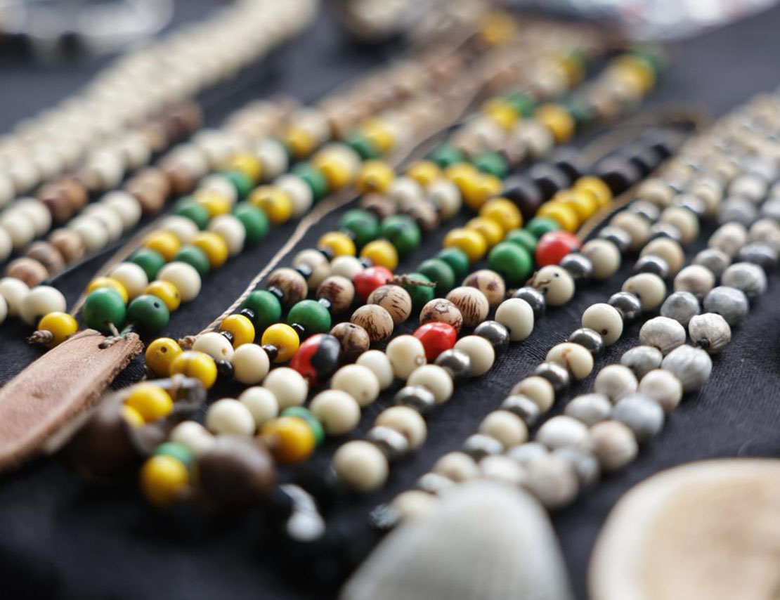 #PraTodosVerem: As imagens retratam a Feira Criativa, focando em artesanato, culinária e empreendedorismo feminino. Uma foto mostra um grupo de mais de dez mulheres, vestindo roupas casuais coloridas, em pé e sorrindo, em um ambiente interno com uma parede de tijolos texturizados ao fundo. As outras três imagens são closes nos produtos da feira: uma delas captura duas mulheres trocando um produto alimentício embalado em uma mesa repleta de bolos, doces e sobremesas em potes; outra foto é um close-up de um artesanato de crochê em forma de rosto de Papai Noel com óculos de arame; e a última foto em detalhe mostra vários colares artesanais feitos de sementes e miçangas em tons de bege, verde, amarelo e marrom, dispostos sobre uma superfície escura. Fim da descrição.