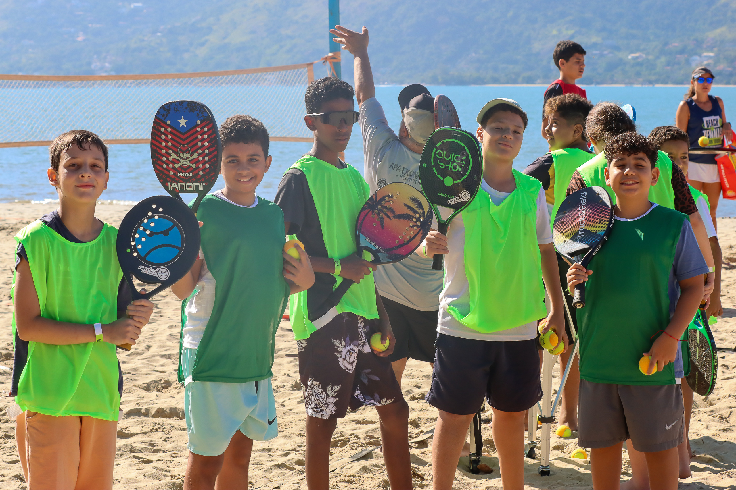 O projeto ‘Beach Tennis para Todos’, com apoio da Prefeitura de São Sebastião, por meio das Secretaria de Esportes (Seesp) e Educação (Seduc), promove mais uma edição do evento que oferece aulas de beach tennis gratuitas para alunos da rede pública de São Sebastião, na Praça da Vela, no Porto Grande.