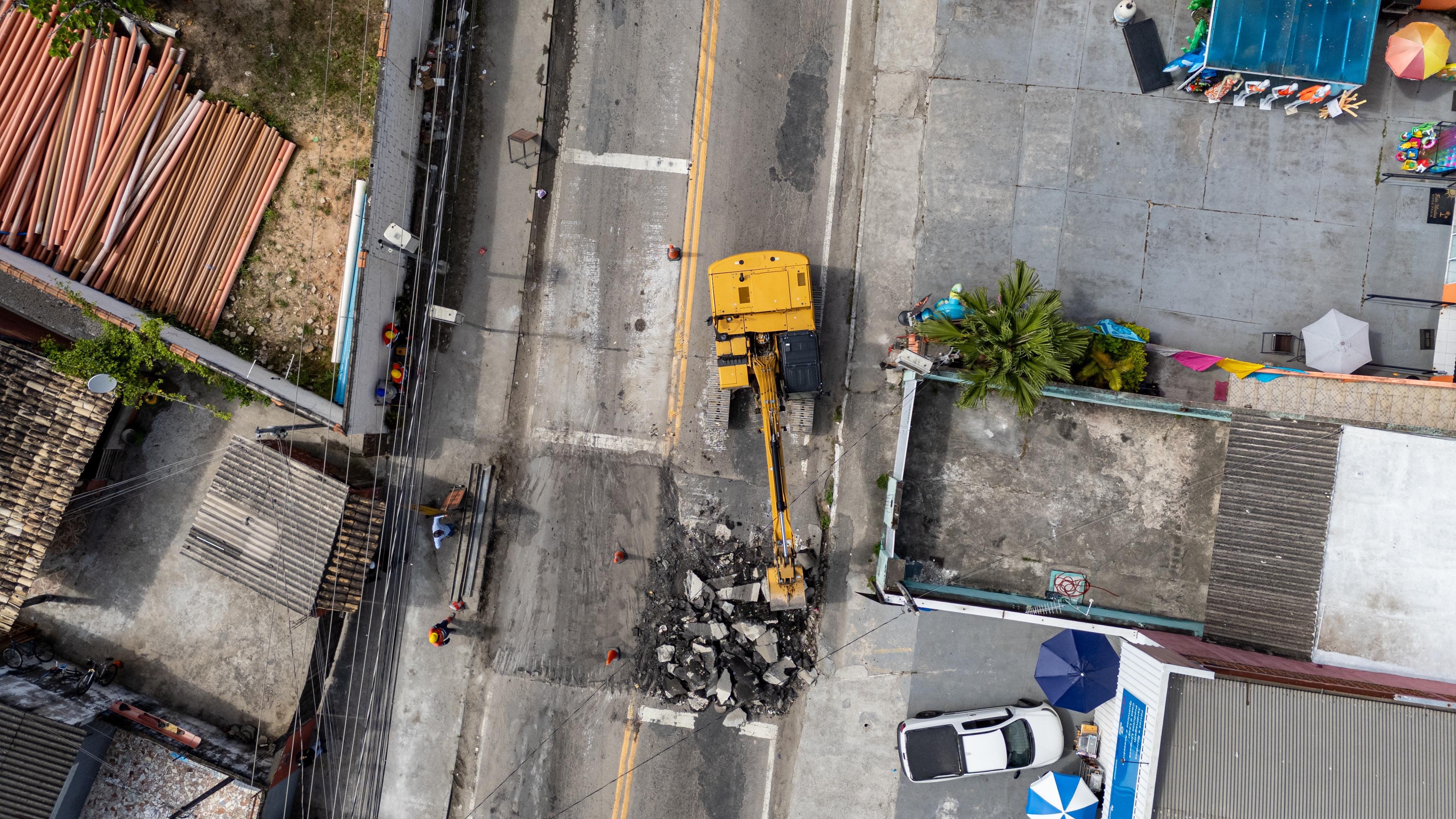 #ParaTodosVerem: fotos da retirada da lombofaixa no bairro do Varadouro. Fim da descrição.