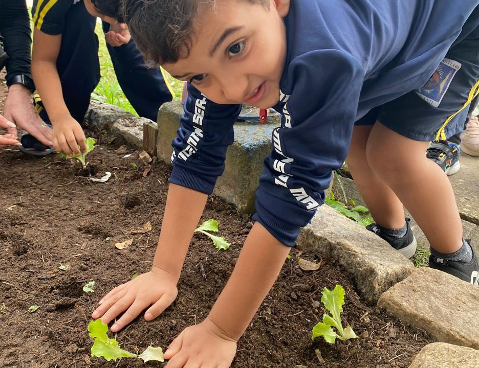 #PraTodosVerem: As imagens registram momentos especiais do projeto ‘Horta para Todos’, com plantação de verduras fresquinhas, crianças e educadores aprendendo juntos o valor do cultivo. Fim da descrição.