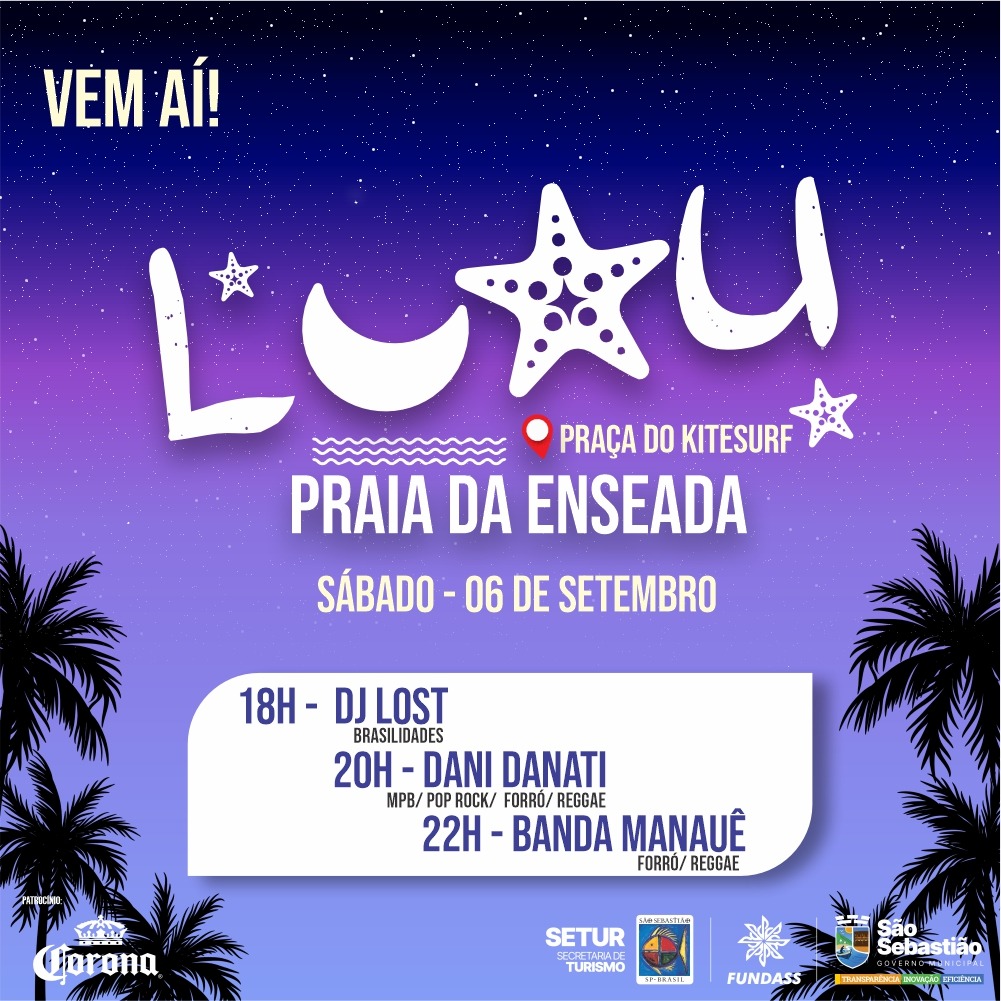 No próximo sábado (6/9), a partir das 18h, a Costa Norte de São Sebastião recebe pela primeira vez o Luau Enseada, evento pé na areia que ocorrerá em frente à Praça do Kitesurf.