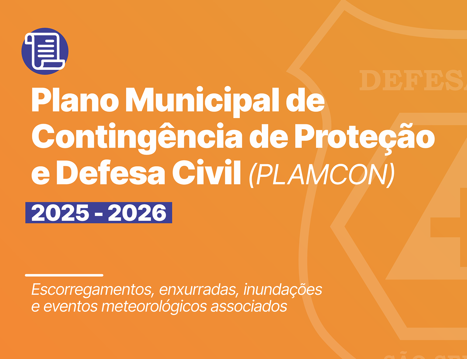 O Plano Municipal de Contingência (PLAMCON) tem como finalidade estabelecer procedimentos, responsabilidades e ações preventivas e emergenciais a serem adotadas em situações de risco, desastre ou calamidade pública. Seu principal objetivo é assegurar uma resposta rápida, eficiente e coordenada, minimizando os impactos à população, ao meio ambiente e aos bens públicos e privados.