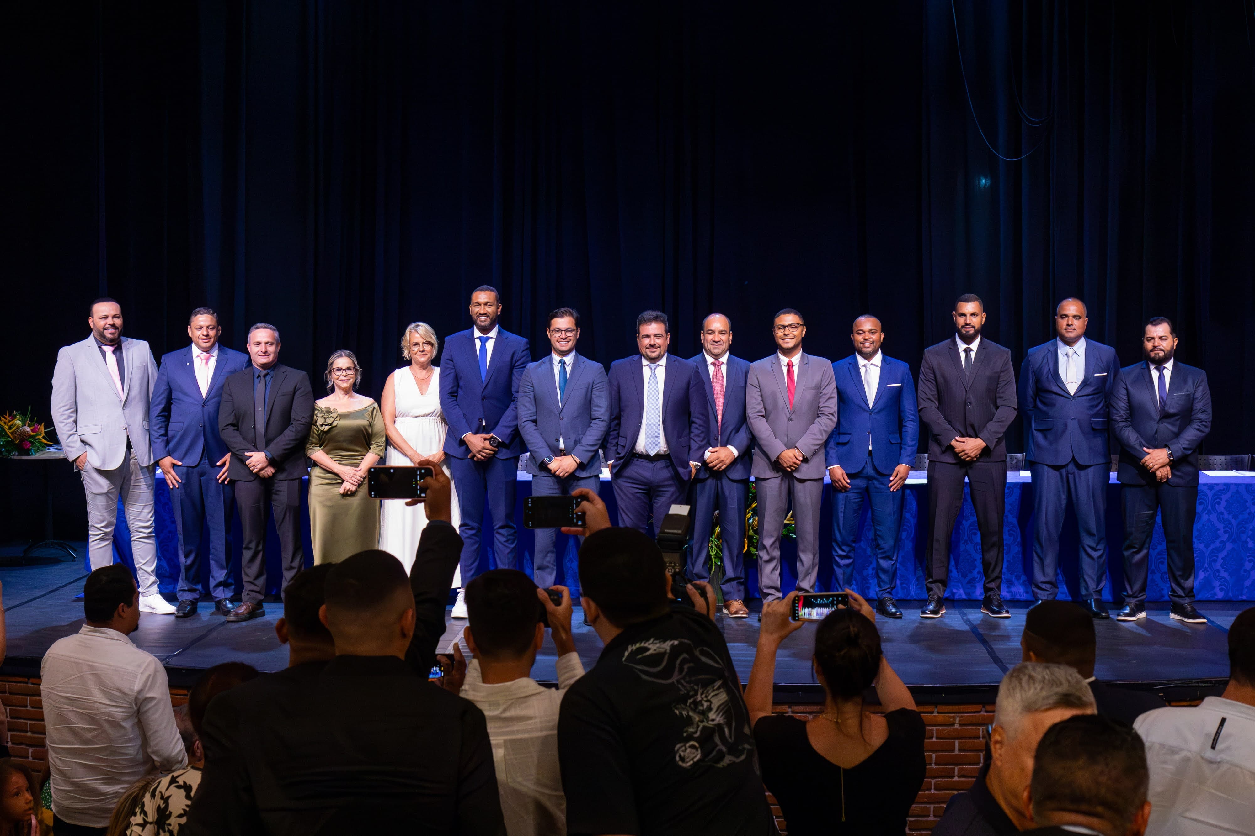 #PraTodosVerem: imagens da cerimônia de posse realizada no Teatro Municipal de São Sebastião. Fim da descrição.